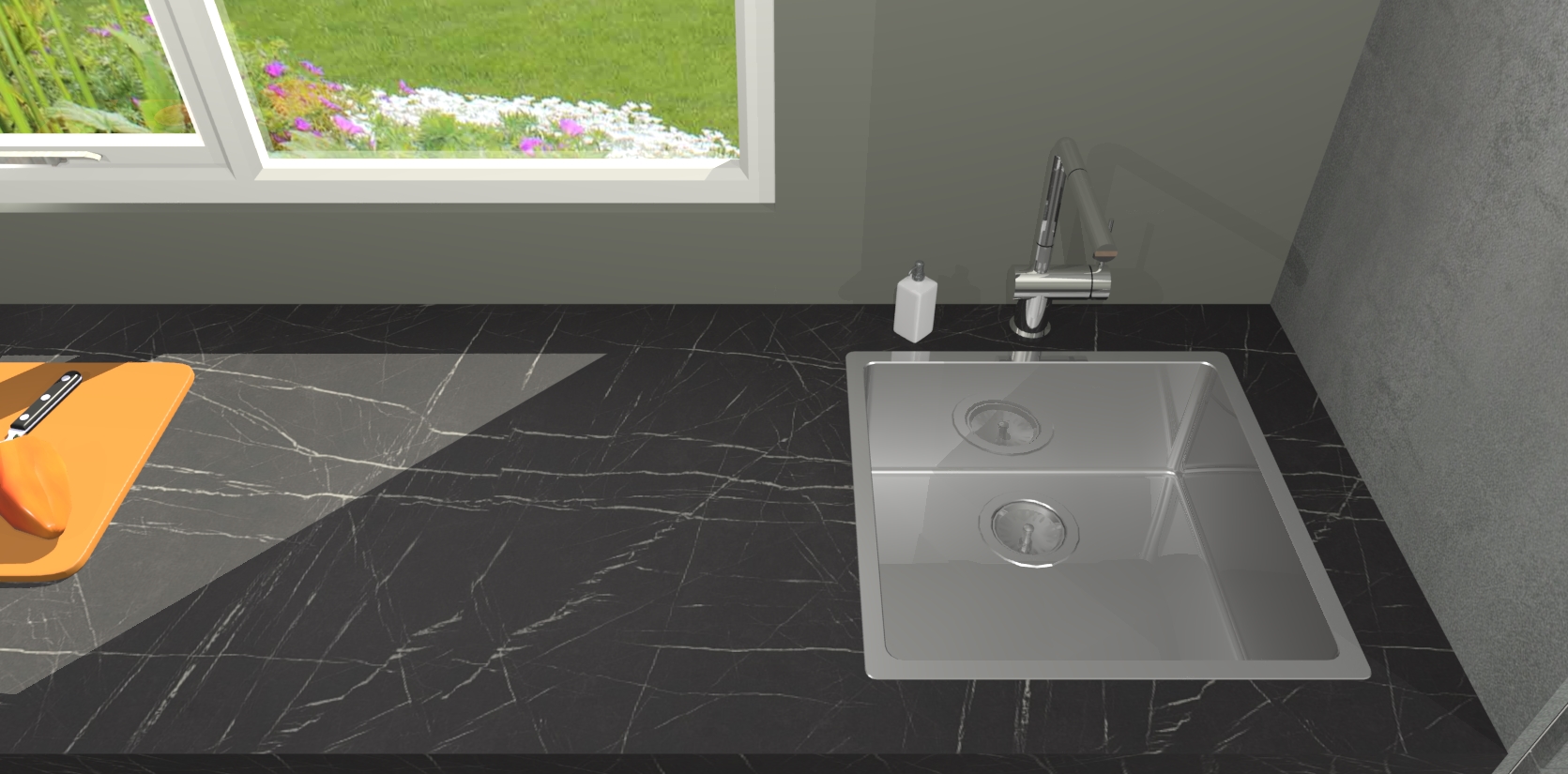 - De spoelbak is nog niet in gevreesd. Dit dient tijdens het werk gedaan te worden