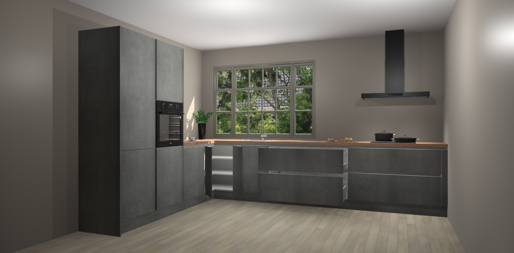 Kom dichtbij de perfecte keuken van uw dromen met de Beton Parelgrijs greeploze keuken Malaga. Met een prachtige houtlook en eigentijds ontwerp, straalt deze keuken warmte en sfeer uit. Of u nu liefhebber bent van traditionele of moderne stijlen, er is genoeg ruimte om aan al uw behoeften te voldoen.