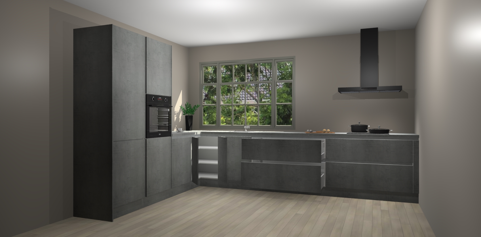 Heeft u nog apparatuur nodig? Geen probleem: de Beton Parelgrijs greeploze keuken Malaga bevat vijf ingebouwde apparaten - een oven, inductiekookplaat, afzuigkap, vaatwasser en koelkast - die gemakkelijk kunnen worden bijgewerkt naar AEG na bestelling. En als dat nog niet genoeg is; onze kasten worden pre-geassembleerd geleverd en zijn verkrijgbaar tegen een vastgeroeste lage prijs! U hoeft nooit meer te zoeken naar goede kwaliteit en service want onze producten hebben echt Duitse kwaliteit.