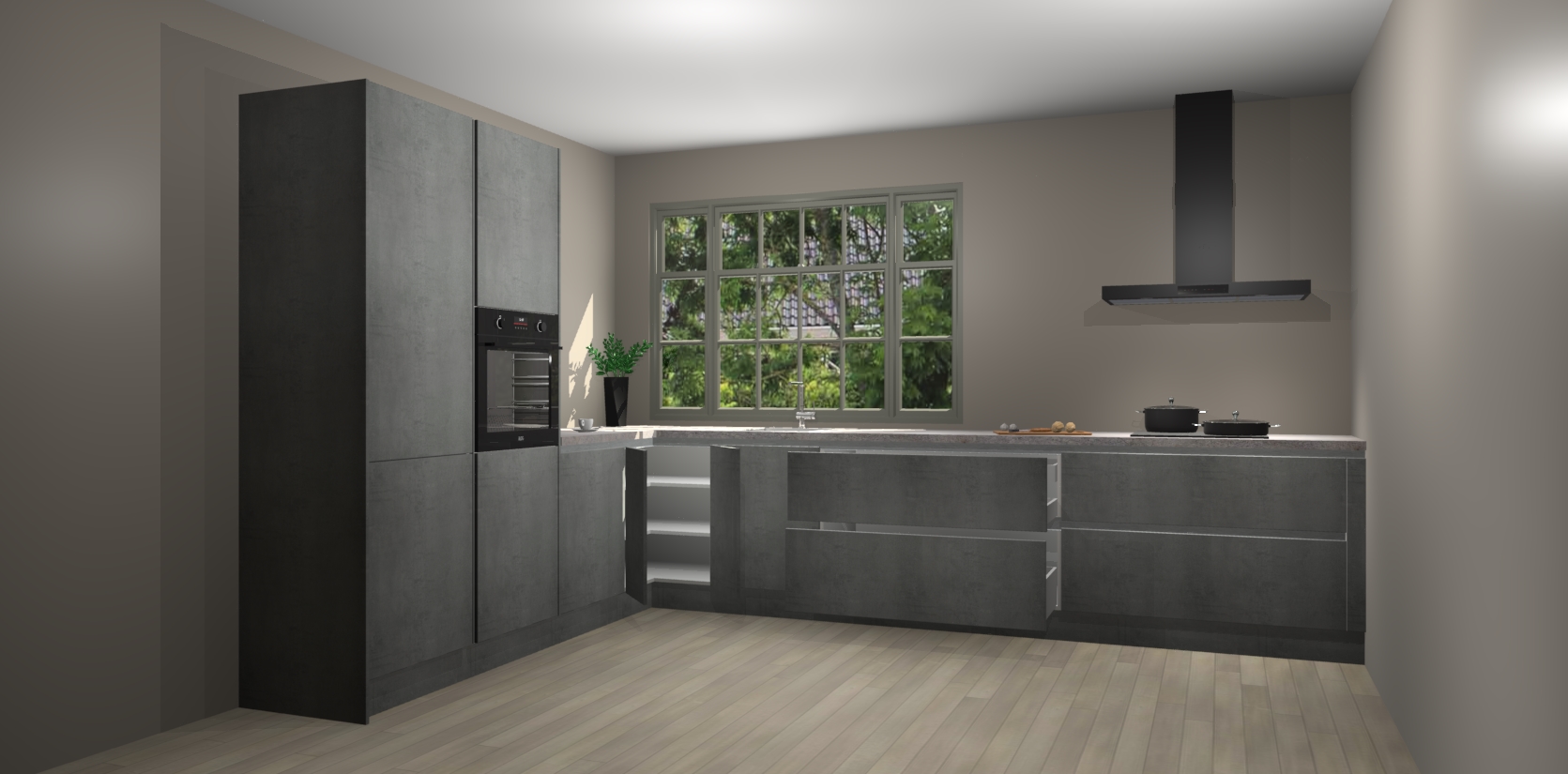 Kom dichtbij de perfecte keuken van uw dromen met de Beton Parelgrijs greeploze keuken Malaga. Met een prachtige houtlook en eigentijds ontwerp, straalt deze keuken warmte en sfeer uit. Of u nu liefhebber bent van traditionele of moderne stijlen, er is genoeg ruimte om aan al uw behoeften te voldoen.