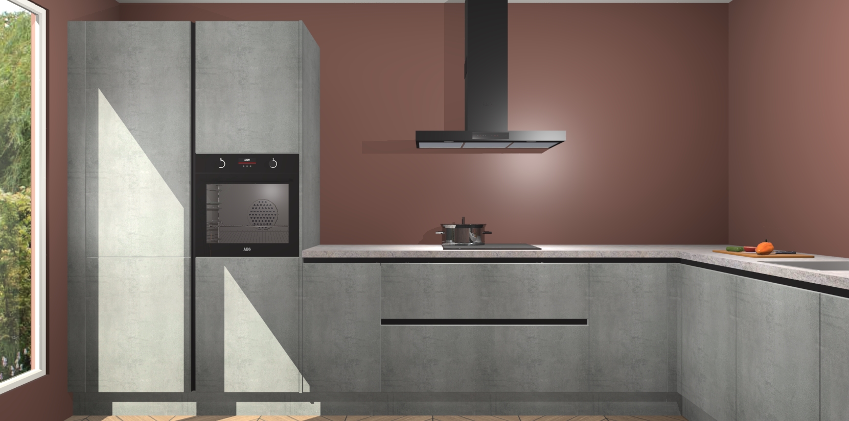 Met een modern, tijdloos design en ruime opslagruimte, zult u zich in no-time thuis voelen in uw nieuwe keuken. Uw leven wordt eenvoudiger met de soft-close deuren die voor het ultieme stille comfort zorgen - geen geluid dat u stoort terwijl u kookt. Ook is de keuken voorzien van 5 ingebouwde apparaten: een oven, inductie kookplaat, afzuigkap, vaatwasser en koelkast. Deze kunnen gemakkelijk na bestelling worden bijgewerkt naar AEG - waardoor uw luxe ervaring compleet is.