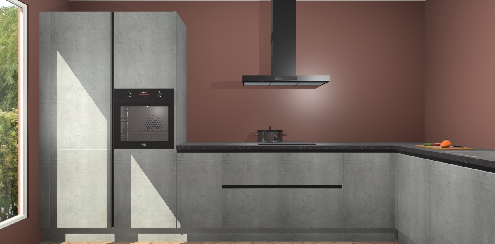 Met een modern, tijdloos design en ruime opslagruimte, zult u zich in no-time thuis voelen in uw nieuwe keuken. Uw leven wordt eenvoudiger met de soft-close deuren die voor het ultieme stille comfort zorgen - geen geluid dat u stoort terwijl u kookt. Ook is de keuken voorzien van 5 ingebouwde apparaten: een oven, inductie kookplaat, afzuigkap, vaatwasser en koelkast. Deze kunnen gemakkelijk na bestelling worden bijgewerkt naar AEG - waardoor uw luxe ervaring compleet is.