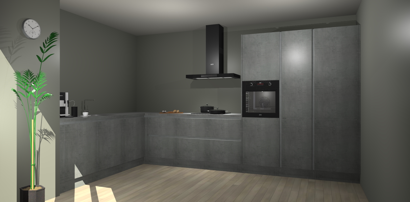Welkom bij de beton parelgrijs greeploze keuken Nuuk. Deze prachtige keuken zal de komende jaren het middelpunt van de belangstelling in uw huis zijn. Uitgerust met vijf inbouwapparaten komt u nooit kookgereedschap tekort.