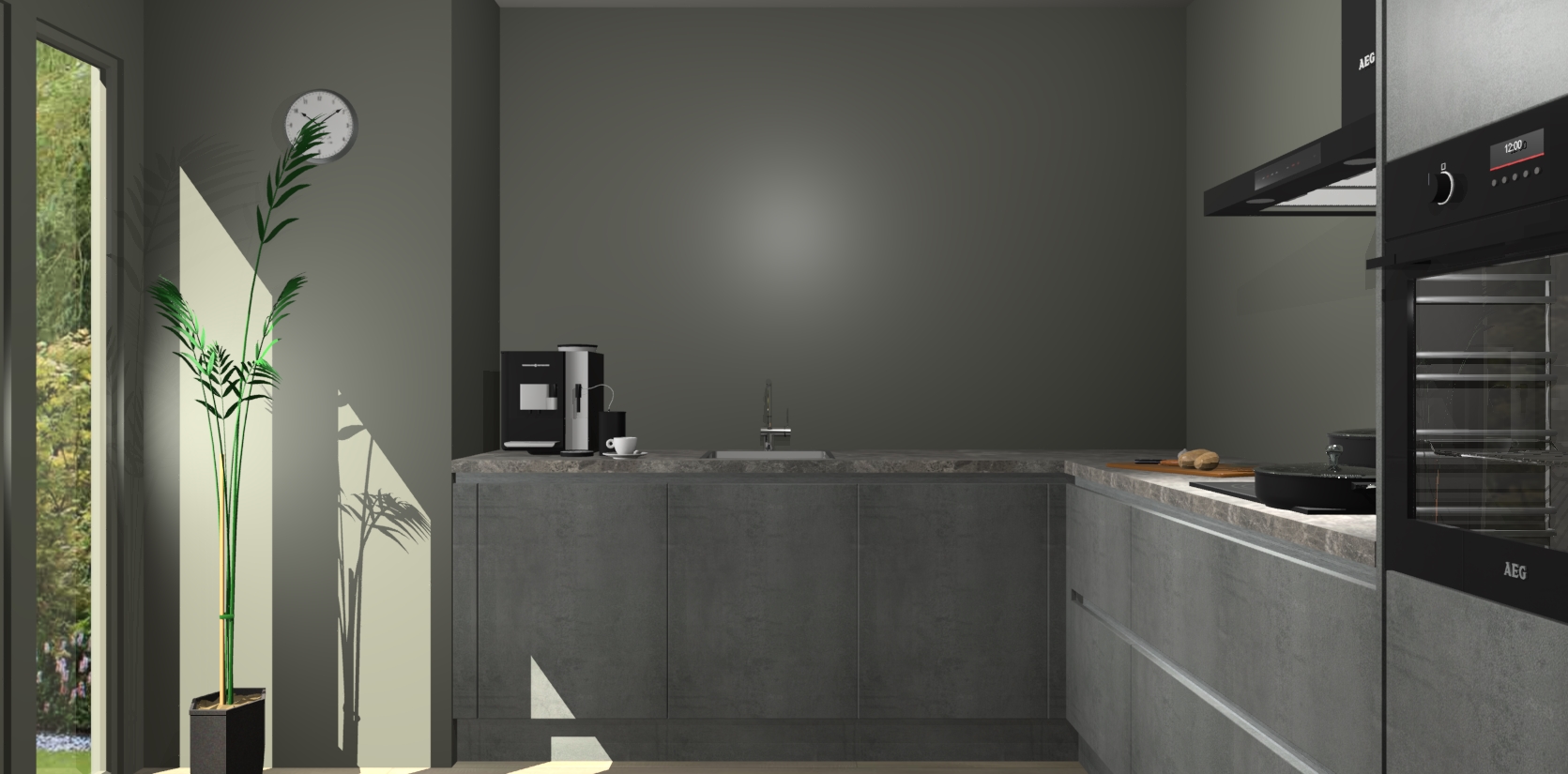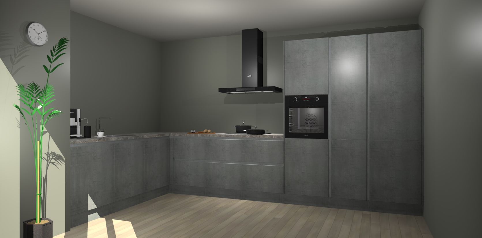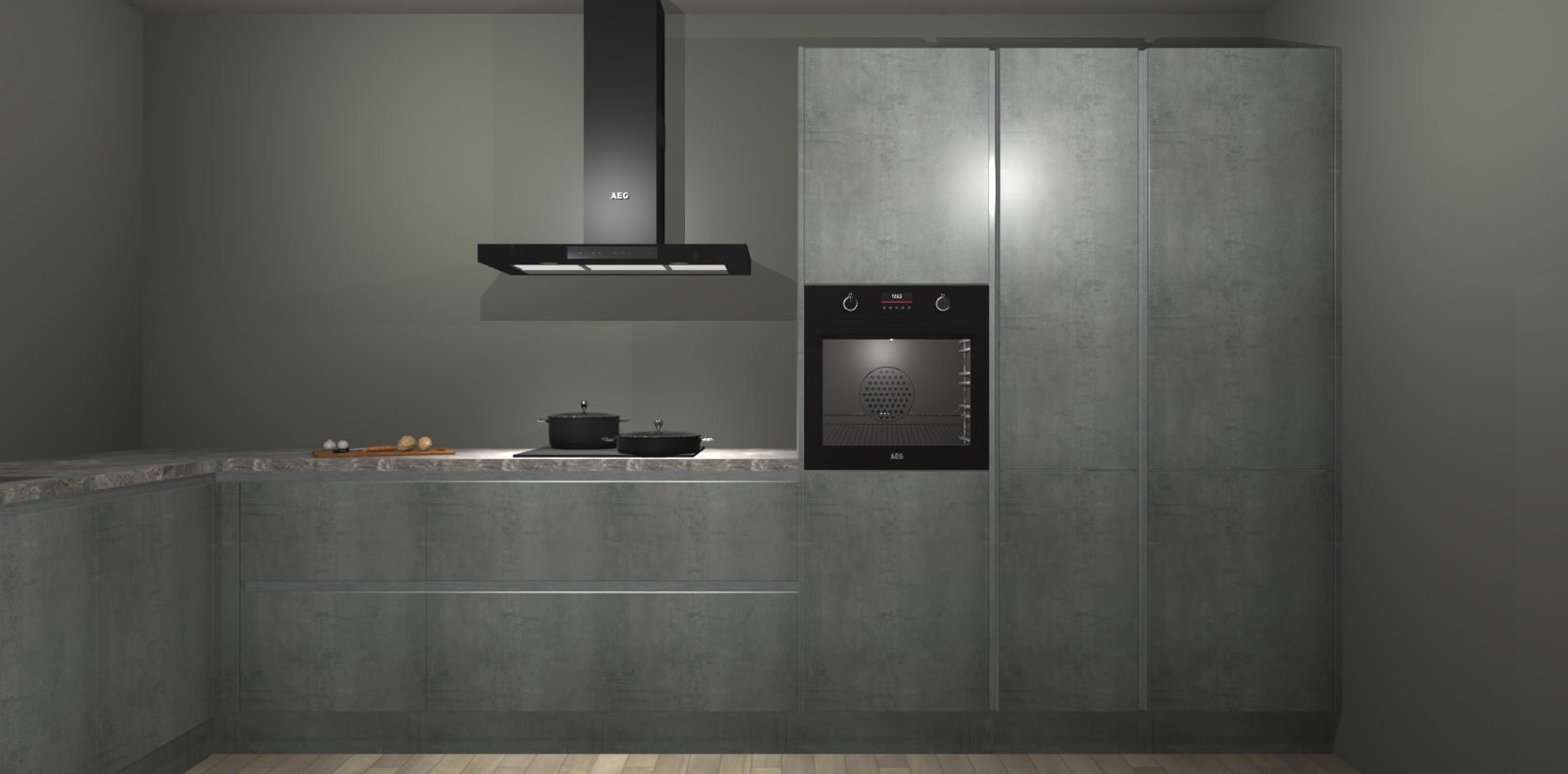 Welkom bij de beton parelgrijs greeploze keuken Nuuk. Deze prachtige keuken zal de komende jaren het middelpunt van de belangstelling in uw huis zijn. Uitgerust met vijf inbouwapparaten komt u nooit kookgereedschap tekort.