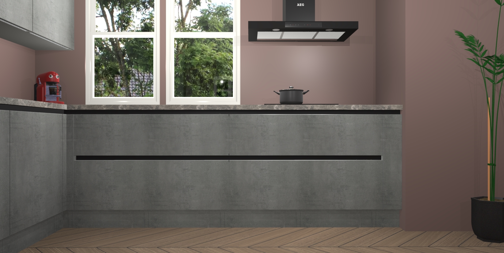 Inclusief plinten, stelpoten en werkblad
