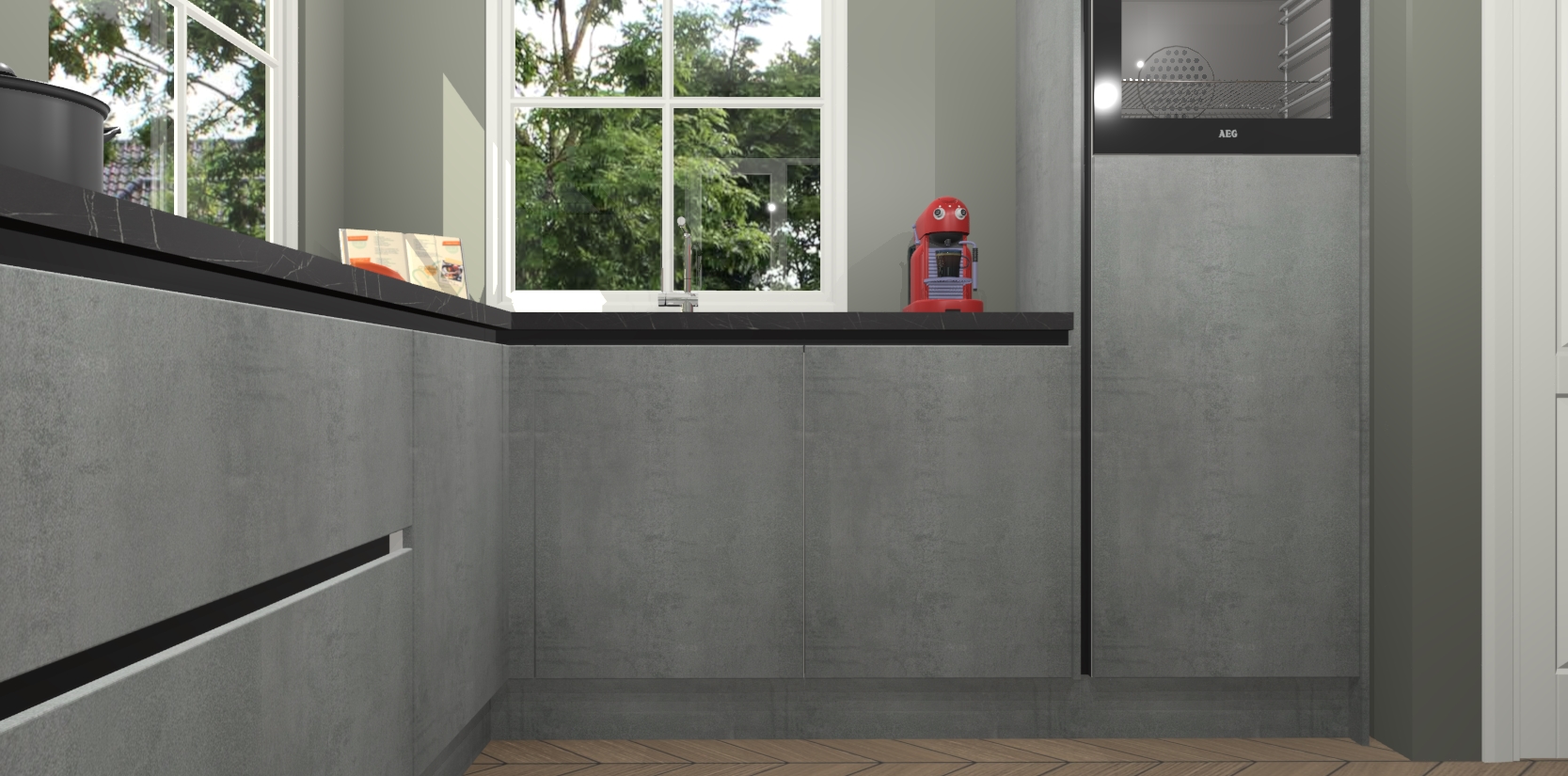 De Beton Parelgrijs greeploze keuken Pai bevat vijf essentiële inbouwapparaten - een oven, inductiekookplaat, afzuigkap, vaatwasser en koelkast - zodat u er na levering meteen in kunt. Voor de slimme kopers die weten dat apparaten vaak het verschil kunnen maken tussen functioneel en luxueus, bieden we eenvoudige upgradeopties naar AEG, van oven naar combimagnetron na bestelling of naar een kookplaat met geïntrigeerde afzuiging. En met onze vaste lage prijs en snelle levering binnen zeven weken vanaf de orderbevestiging hoeft u zich geen zorgen te maken over verborgen kosten of lange levertijden die uw droomkeuken kunnen vertragen.