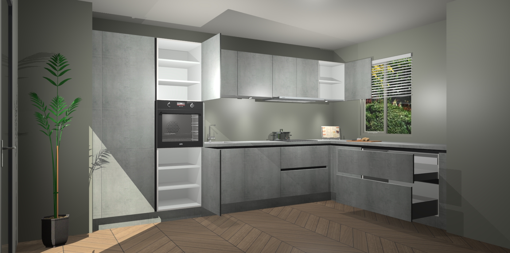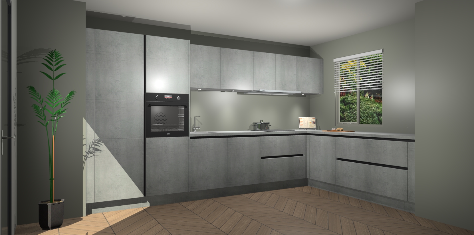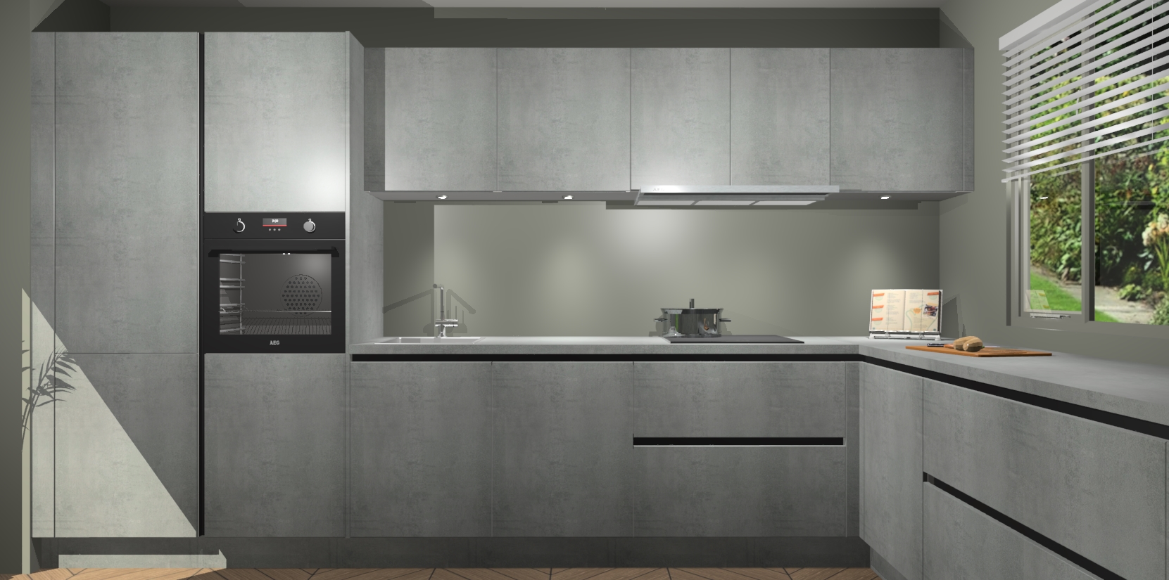 Verwelkom de natuurlijke warmte van de Beton Parelgrijs greeploze keuken Petten in uw huis. Deze prachtige hoekkeuken met zijn moderne design en warme houten look geeft u meer dan genoeg opbergruimte om uw comfortabel te voelen in uw keuken. Geniet van soft-close deuren die al uw gasten het gevoel zullen geven dat ze zich in een luxueuze ruimte bevinden.