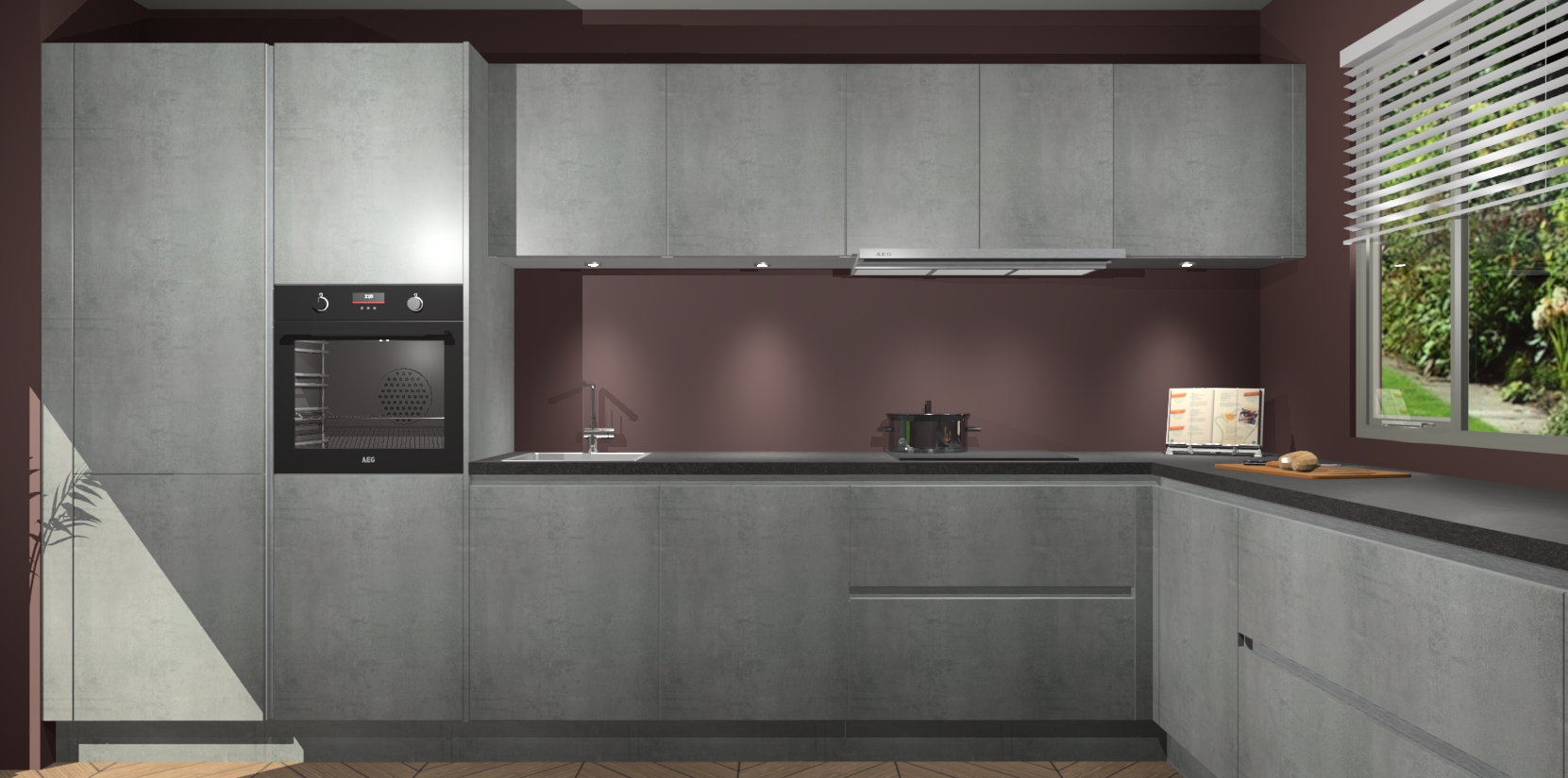 Verwelkom de natuurlijke warmte van de Beton Parelgrijs greeploze keuken Petten in uw huis. Deze prachtige hoekkeuken met zijn moderne design en warme houten look geeft u meer dan genoeg opbergruimte om uw comfortabel te voelen in uw keuken. Geniet van soft-close deuren die al uw gasten het gevoel zullen geven dat ze zich in een luxueuze ruimte bevinden.