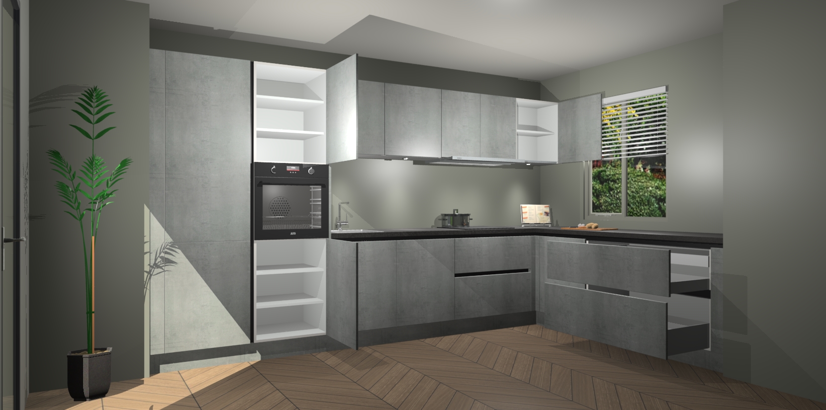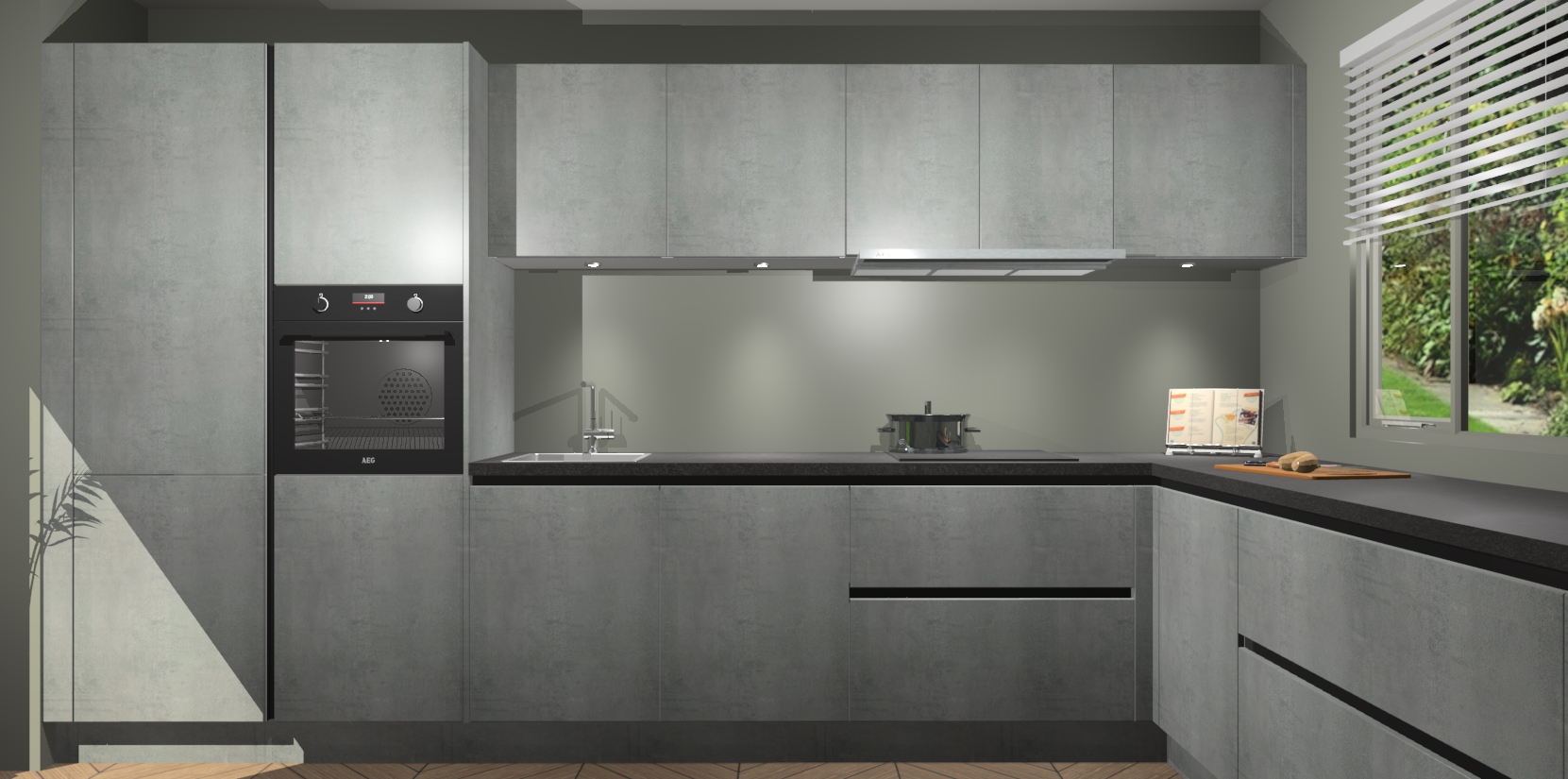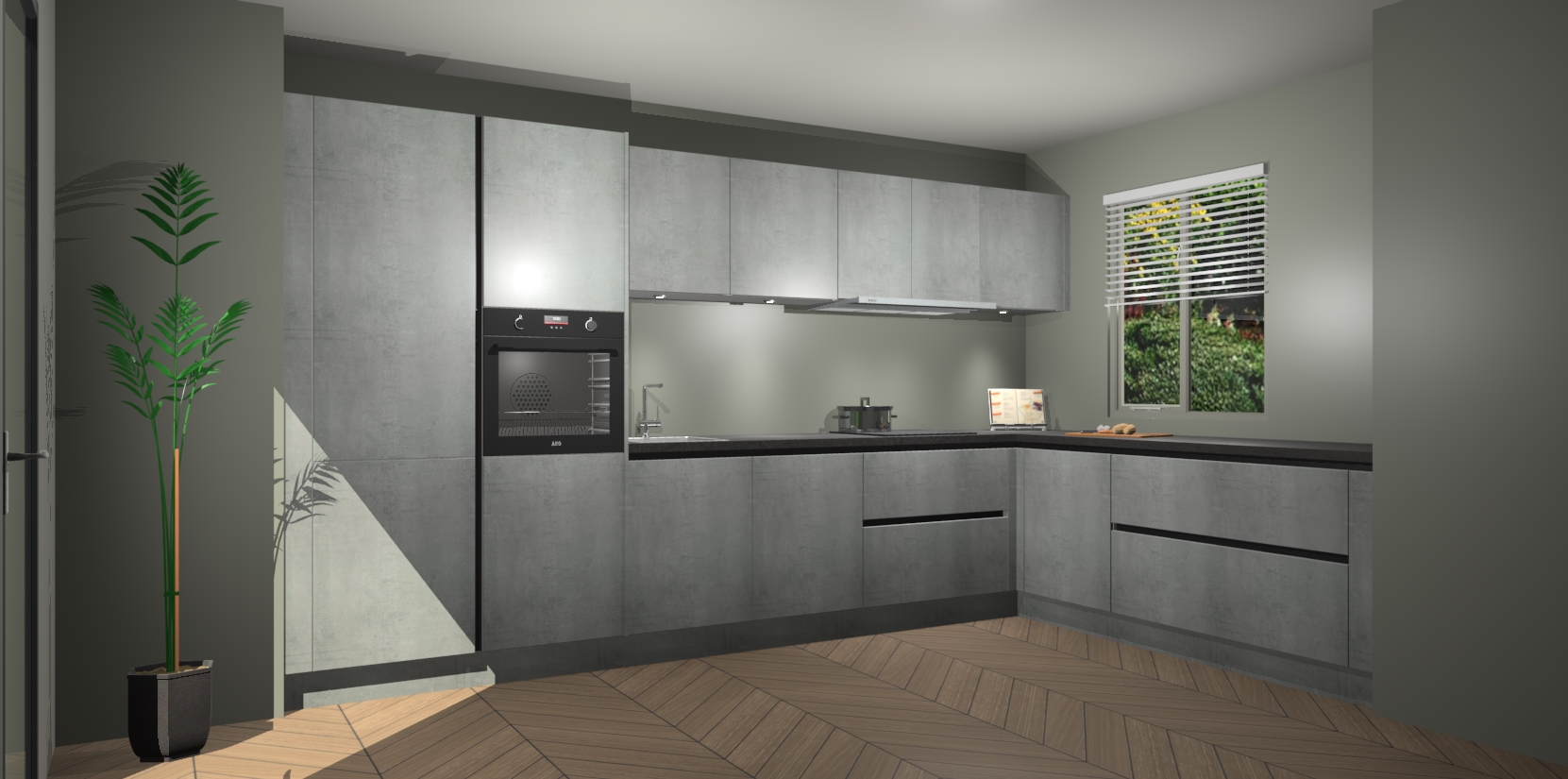 Verwelkom de natuurlijke warmte van de Beton Parelgrijs greeploze keuken Petten in uw huis. Deze prachtige hoekkeuken met zijn moderne design en warme houten look geeft u meer dan genoeg opbergruimte om uw comfortabel te voelen in uw keuken. Geniet van soft-close deuren die al uw gasten het gevoel zullen geven dat ze zich in een luxueuze ruimte bevinden.