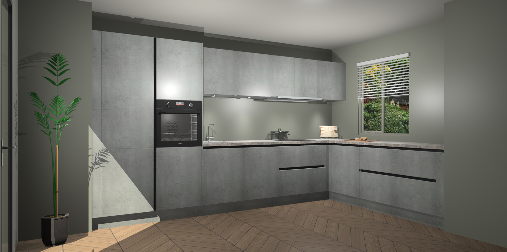 Verwelkom de natuurlijke warmte van de Beton Parelgrijs greeploze keuken Petten in uw huis. Deze prachtige hoekkeuken met zijn moderne design en warme houten look geeft u meer dan genoeg opbergruimte om uw comfortabel te voelen in uw keuken. Geniet van soft-close deuren die al uw gasten het gevoel zullen geven dat ze zich in een luxueuze ruimte bevinden.