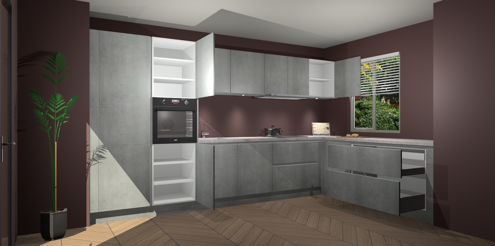 Verwelkom de natuurlijke warmte van de Beton Parelgrijs greeploze keuken Petten in uw huis. Deze prachtige hoekkeuken met zijn moderne design en warme houten look geeft u meer dan genoeg opbergruimte om uw comfortabel te voelen in uw keuken. Geniet van soft-close deuren die al uw gasten het gevoel zullen geven dat ze zich in een luxueuze ruimte bevinden.