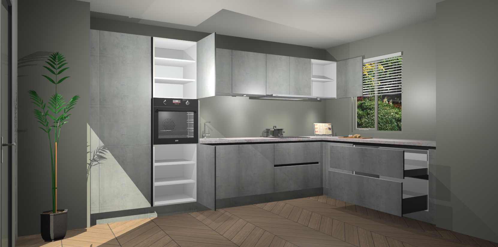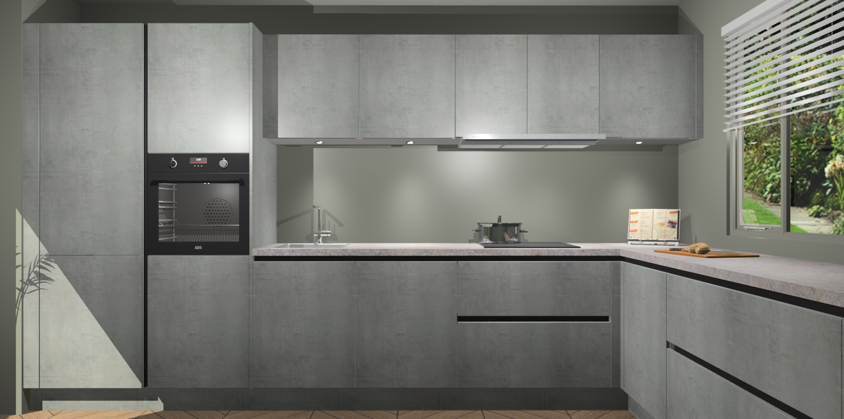 Verwelkom de natuurlijke warmte van de Beton Parelgrijs greeploze keuken Petten in uw huis. Deze prachtige hoekkeuken met zijn moderne design en warme houten look geeft u meer dan genoeg opbergruimte om uw comfortabel te voelen in uw keuken. Geniet van soft-close deuren die al uw gasten het gevoel zullen geven dat ze zich in een luxueuze ruimte bevinden.