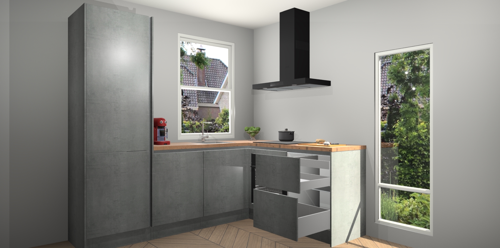 De prachtige Beton Parelgrijs greeploze keuken Phuket is de perfecte keuze als u op zoek bent naar een moderne hoekkeuken met alle luxe en comfort die u kunt verwachten! De uitstraling in het houtlook-design draagt bij aan de warme sfeer die u nu al voelt wanneer u er naar kijkt. Heeft u genoeg van ouderwetse keukens? Probeer dan direct deze moderne, mooie hoekkeukens en laat iedereen verbluft achter!