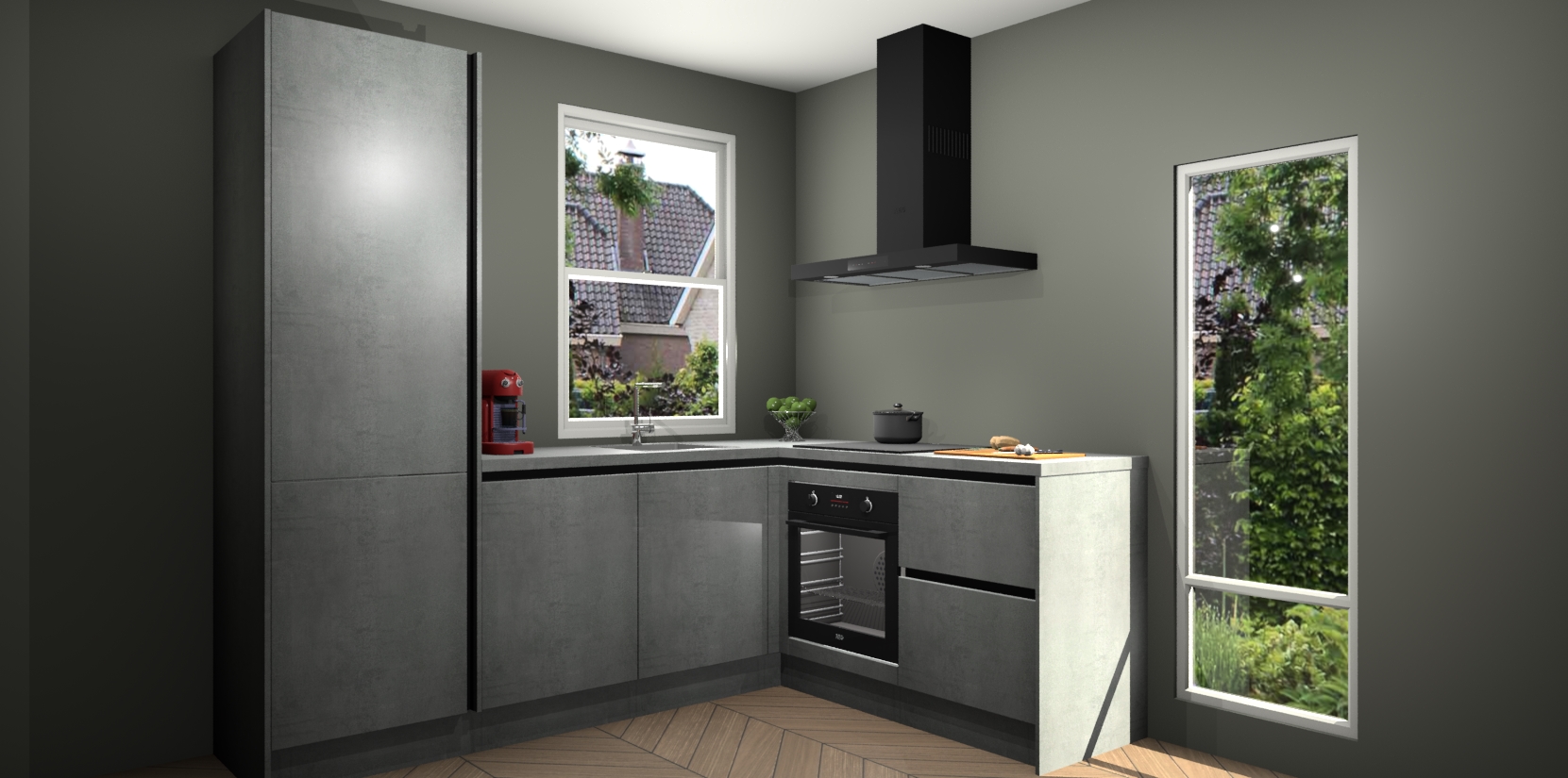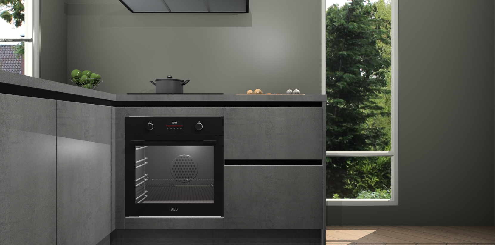 De Beton Parelgrijs greeploze keuken Phuket heeft alles wat u maar kunt wensen. Niet alleen zijn er softclose deuren, maar ook 5 ingebouwde apparaten: een oven, inductiekookplaat, afzuigkap, vaatwasser en koelkast - waarbij u later gemakkelijk naar het AEG merk, van inductiekookplaat naar kookplaat met geïntegreerde afzuiging of van oven naar combimagnetron kunt upgraden. Dat alles tegen een vast laag tarief! Bovendien geeft de Beton Parelgrijs greeploze keuken Phuket supersnelle levering van 7 weken. Echt iets voor u als u er niet op wilt wachten om het resultaat te zien in eigen keuken!