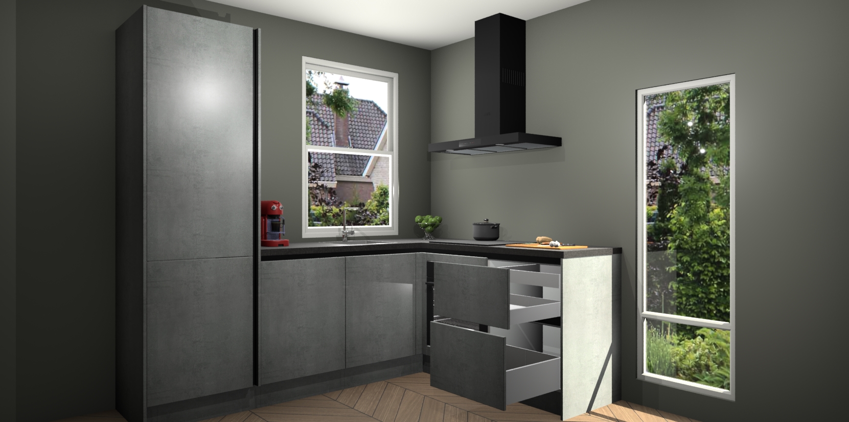 De prachtige Beton Parelgrijs greeploze keuken Phuket is de perfecte keuze als u op zoek bent naar een moderne hoekkeuken met alle luxe en comfort die u kunt verwachten! De uitstraling in het houtlook-design draagt bij aan de warme sfeer die u nu al voelt wanneer u er naar kijkt. Heeft u genoeg van ouderwetse keukens? Probeer dan direct deze moderne, mooie hoekkeukens en laat iedereen verbluft achter!
