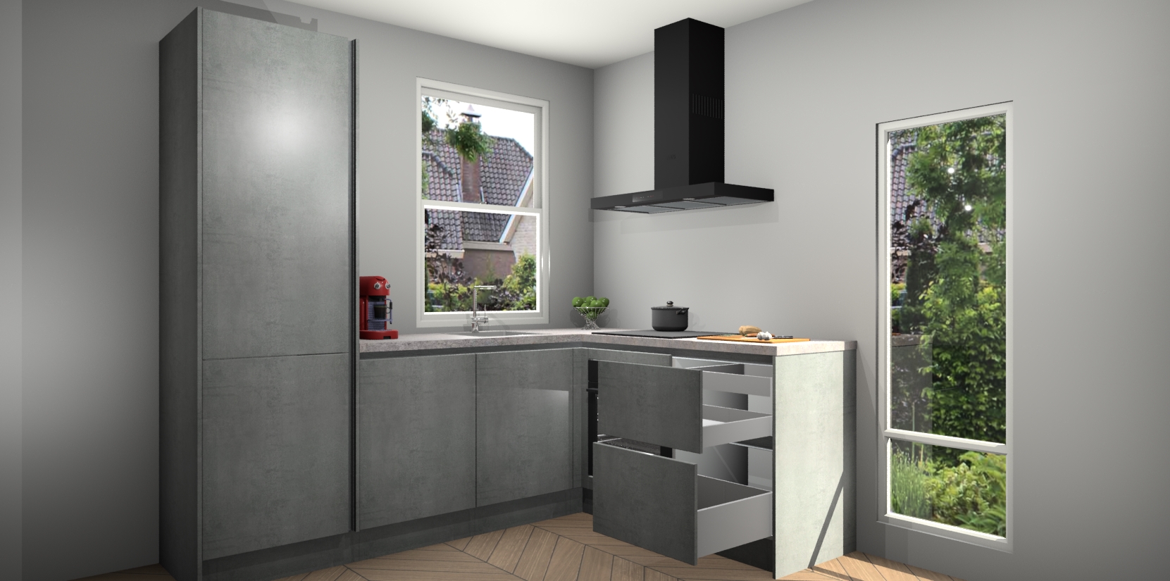 De prachtige Beton Parelgrijs greeploze keuken Phuket is de perfecte keuze als u op zoek bent naar een moderne hoekkeuken met alle luxe en comfort die u kunt verwachten! De uitstraling in het houtlook-design draagt bij aan de warme sfeer die u nu al voelt wanneer u er naar kijkt. Heeft u genoeg van ouderwetse keukens? Probeer dan direct deze moderne, mooie hoekkeukens en laat iedereen verbluft achter!