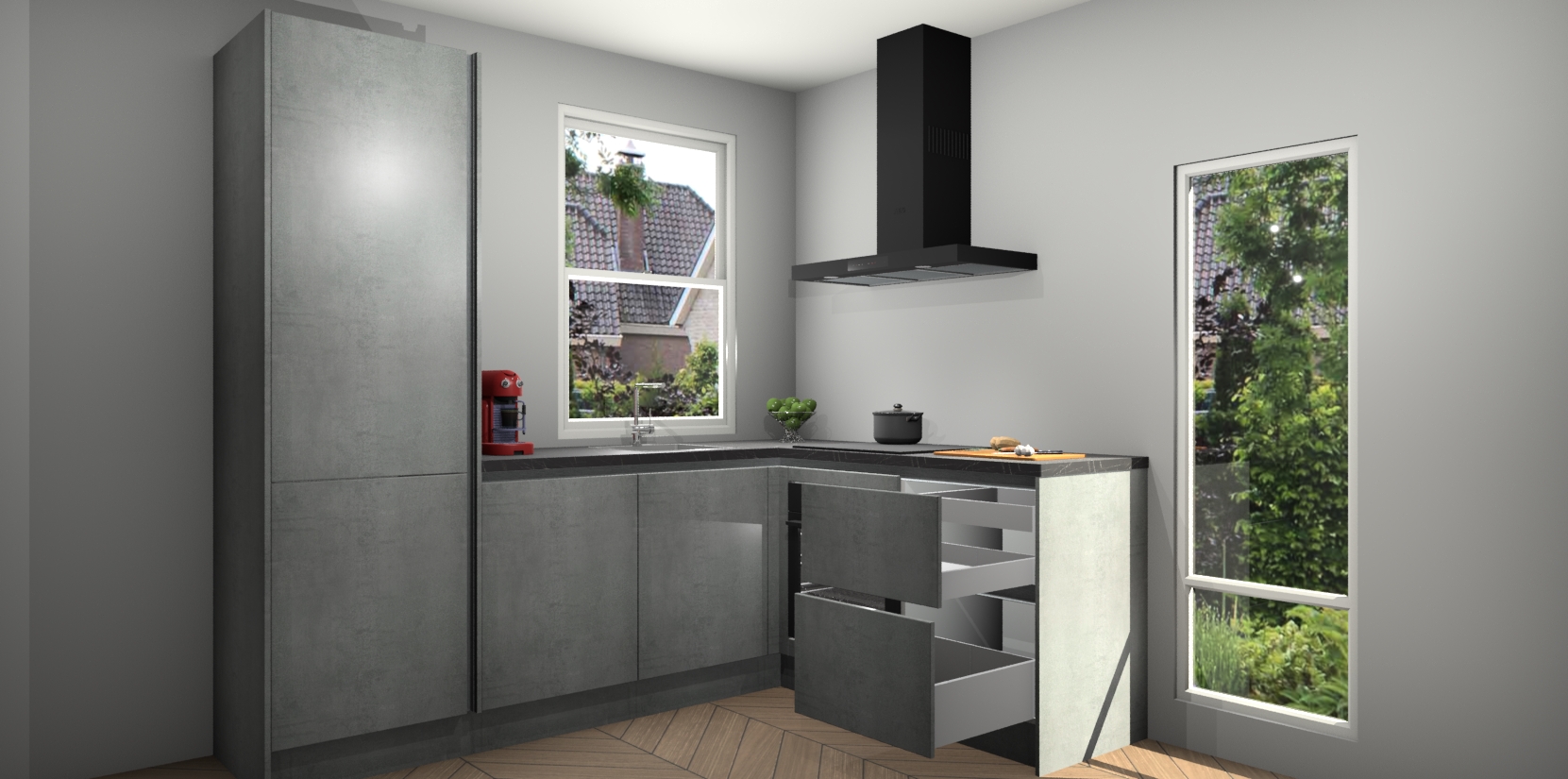 De prachtige Beton Parelgrijs greeploze keuken Phuket is de perfecte keuze als u op zoek bent naar een moderne hoekkeuken met alle luxe en comfort die u kunt verwachten! De uitstraling in het houtlook-design draagt bij aan de warme sfeer die u nu al voelt wanneer u er naar kijkt. Heeft u genoeg van ouderwetse keukens? Probeer dan direct deze moderne, mooie hoekkeukens en laat iedereen verbluft achter!