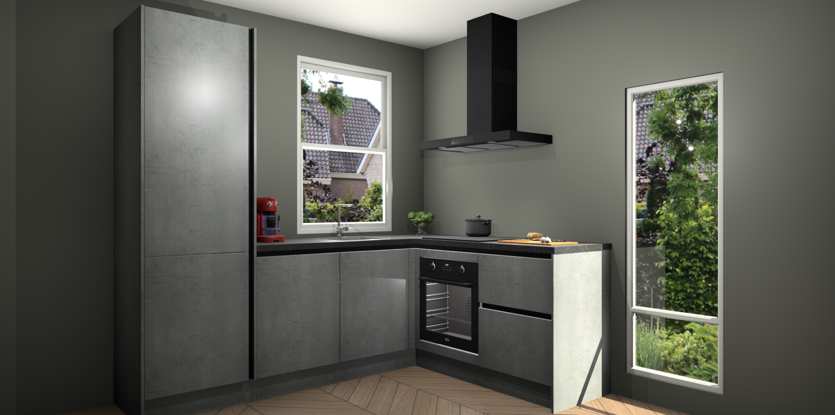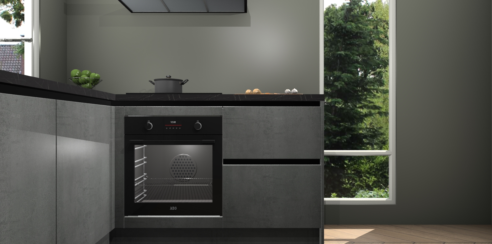 De Beton Parelgrijs greeploze keuken Phuket heeft alles wat u maar kunt wensen. Niet alleen zijn er softclose deuren, maar ook 5 ingebouwde apparaten: een oven, inductiekookplaat, afzuigkap, vaatwasser en koelkast - waarbij u later gemakkelijk naar het AEG merk, van inductiekookplaat naar kookplaat met geïntegreerde afzuiging of van oven naar combimagnetron kunt upgraden. Dat alles tegen een vast laag tarief! Bovendien geeft de Beton Parelgrijs greeploze keuken Phuket supersnelle levering van 7 weken. Echt iets voor u als u er niet op wilt wachten om het resultaat te zien in eigen keuken!
