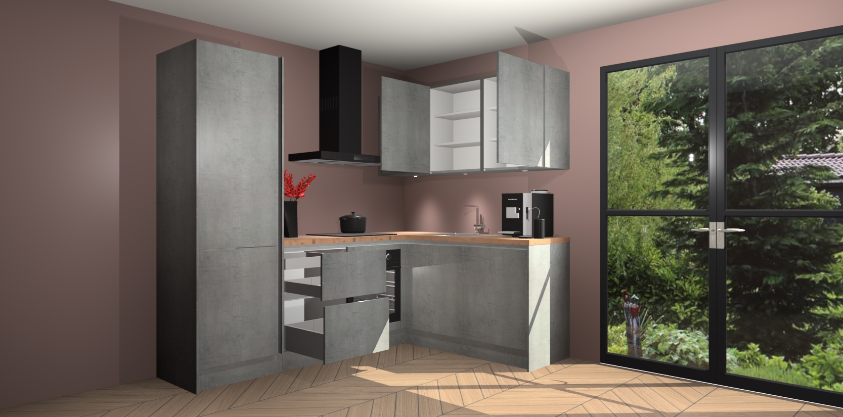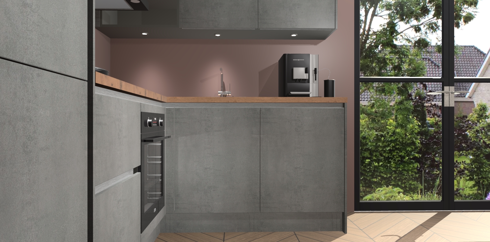 Wauw, dit is de Beton Parelgrijs greeploze keuken Pilsen! U kunt gerust zeggen dat u elegantie combineert met functionaliteit met deze keuken. Met een modern en chique ontwerp is de keuken precies wat u nodig heeft om uw ruimte te verfraaien. De binnenzijde van de kasten is in dezelfde donkere kleur als de buitenzijde voor een uniforme look, compleet met softclose-kasten die stil sluiten.