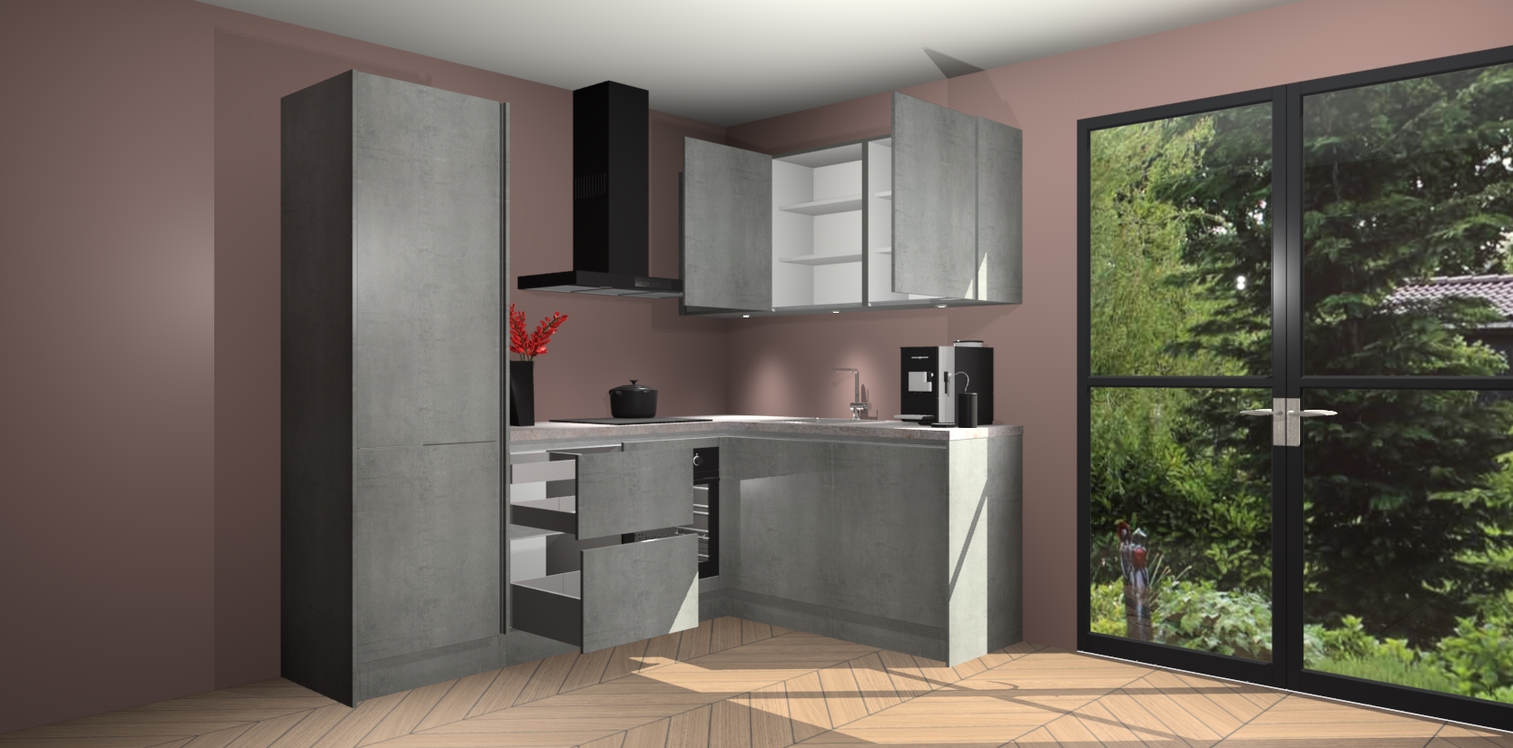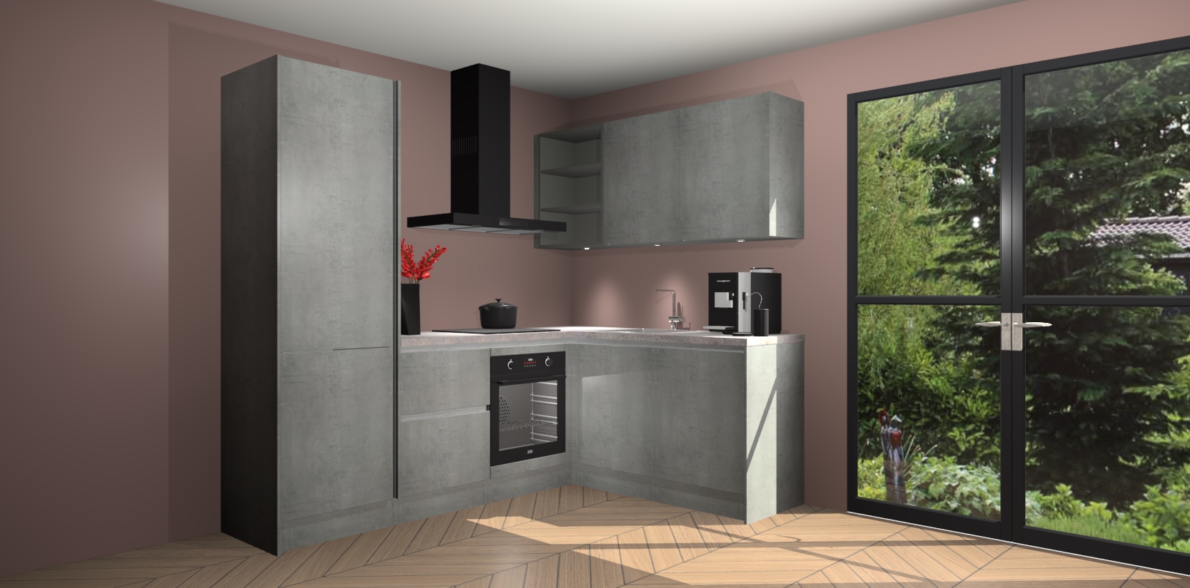 Wauw, dit is de Beton Parelgrijs greeploze keuken Pilsen! U kunt gerust zeggen dat u elegantie combineert met functionaliteit met deze keuken. Met een modern en chique ontwerp is de keuken precies wat u nodig heeft om uw ruimte te verfraaien. De binnenzijde van de kasten is in dezelfde donkere kleur als de buitenzijde voor een uniforme look, compleet met softclose-kasten die stil sluiten.
