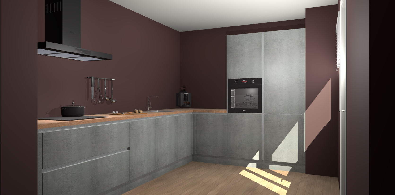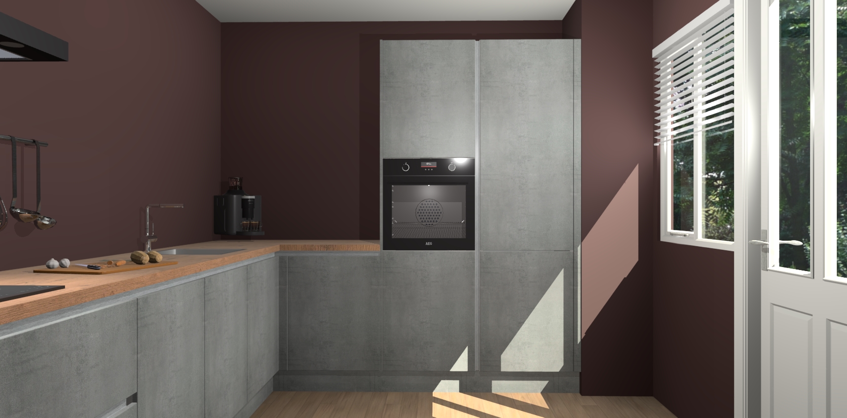 Welkom bij de Beton Parelgrijs greeploze keuken Portland. Deze prachtige keuken zal de komende jaren het middelpunt van de belangstelling in uw huis zijn. Uitgerust met vijf inbouwapparaten komt u nooit kookgereedschap tekort. Bovendien geeft de warme houtlook elke ruimte een uitnodigende en tijdloze uitstraling.