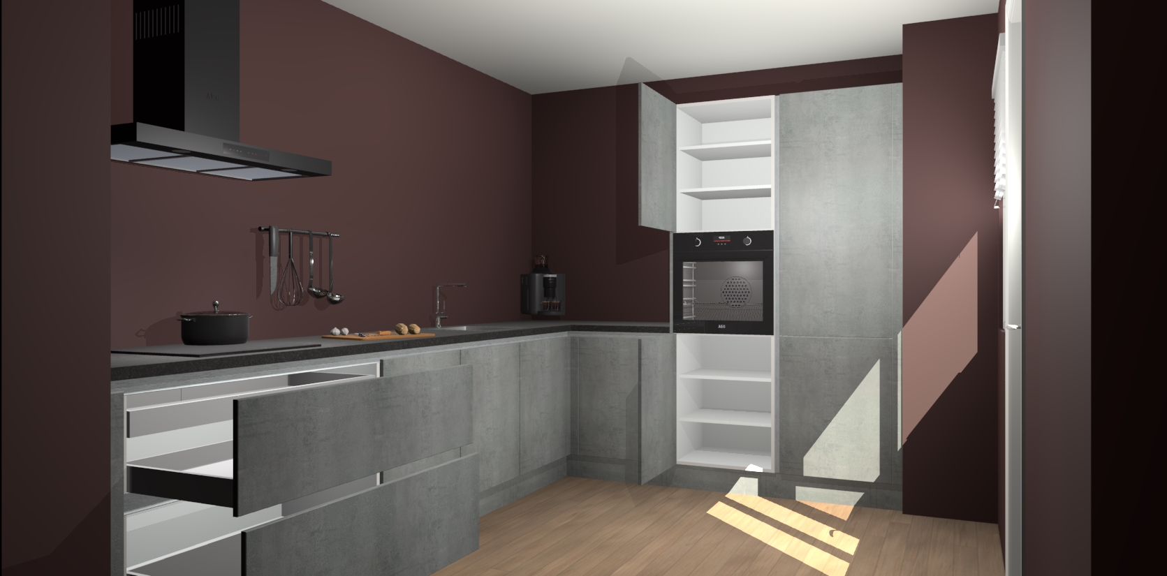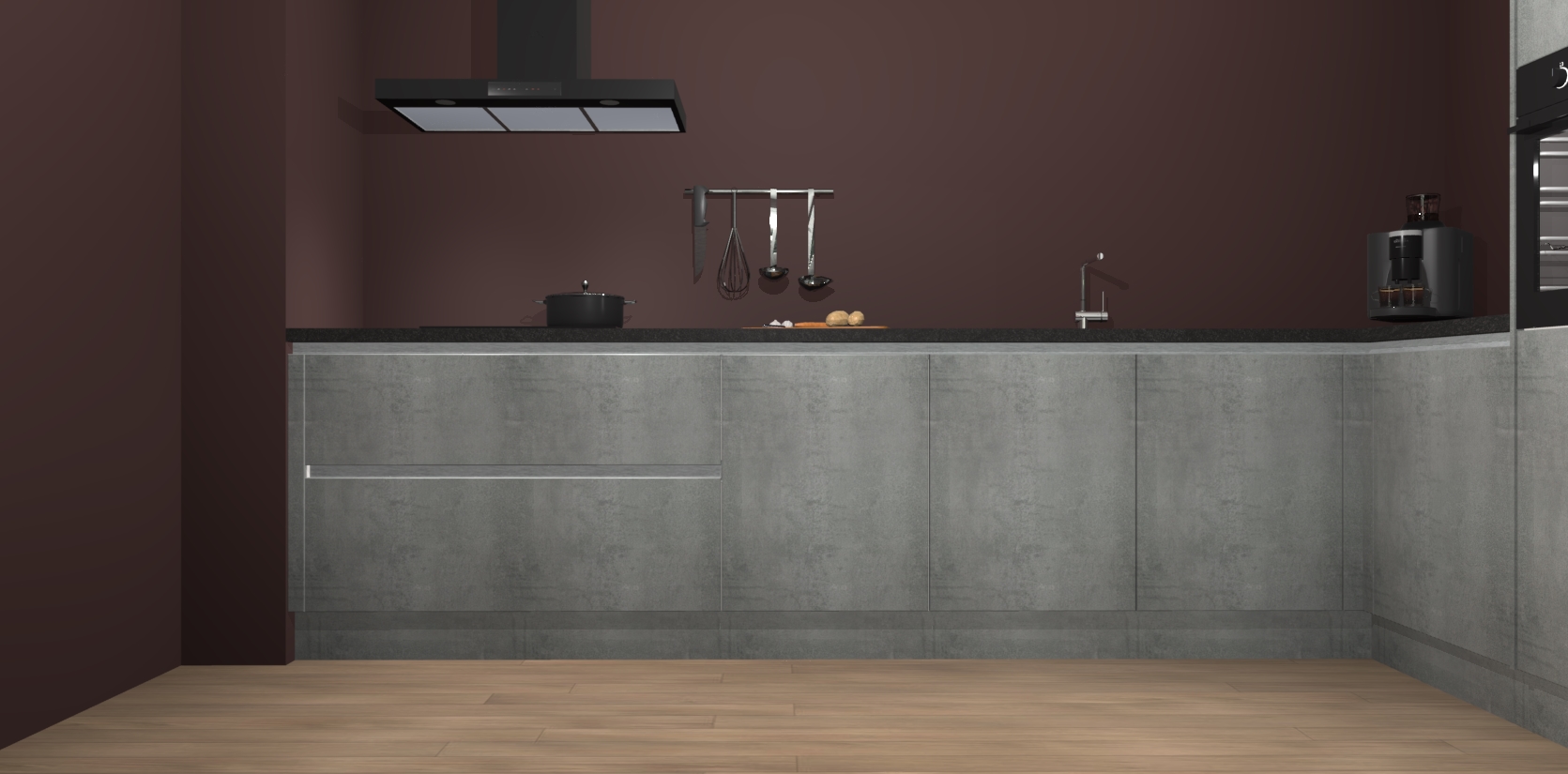 Welkom bij de Beton Parelgrijs greeploze keuken Portland. Deze prachtige keuken zal de komende jaren het middelpunt van de belangstelling in uw huis zijn. Uitgerust met vijf inbouwapparaten komt u nooit kookgereedschap tekort. Bovendien geeft de warme houtlook elke ruimte een uitnodigende en tijdloze uitstraling.