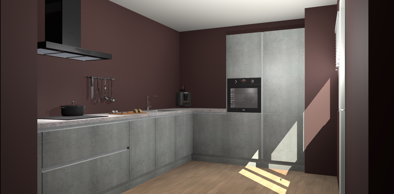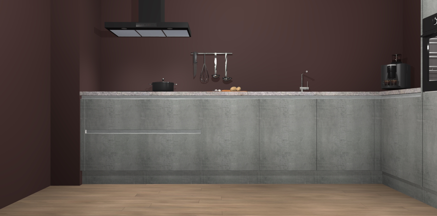 Welkom bij de Beton Parelgrijs greeploze keuken Portland. Deze prachtige keuken zal de komende jaren het middelpunt van de belangstelling in uw huis zijn. Uitgerust met vijf inbouwapparaten komt u nooit kookgereedschap tekort. Bovendien geeft de warme houtlook elke ruimte een uitnodigende en tijdloze uitstraling.