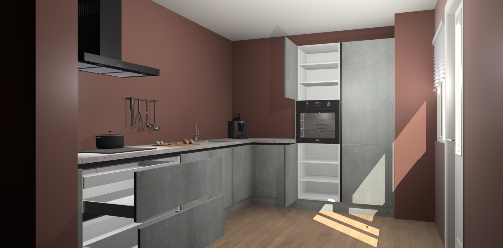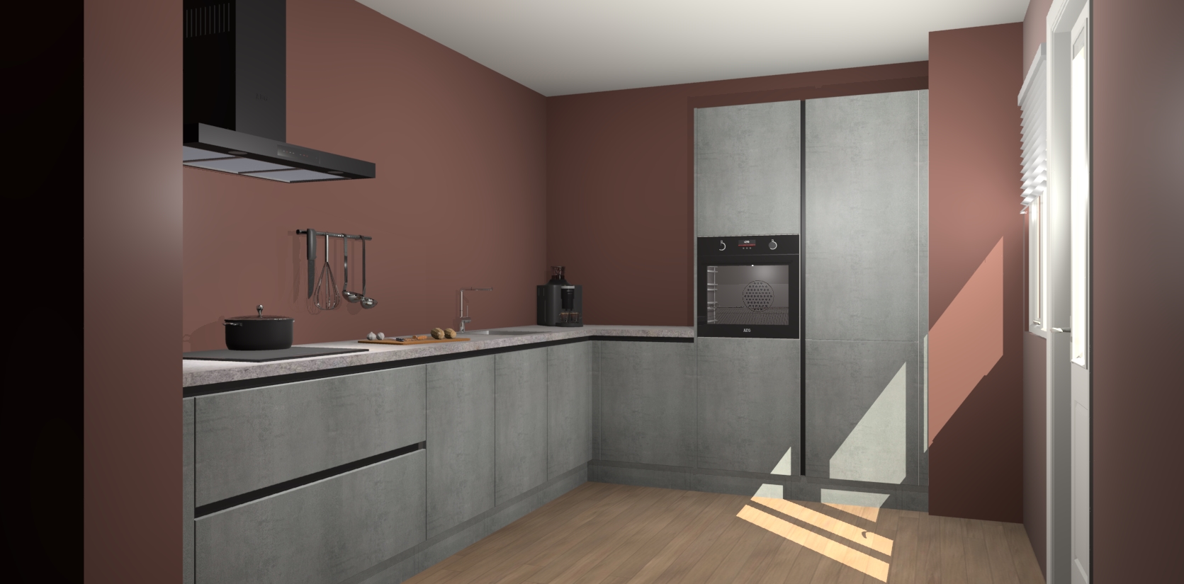 Welkom bij de Beton Parelgrijs greeploze keuken Portland. Deze prachtige keuken zal de komende jaren het middelpunt van de belangstelling in uw huis zijn. Uitgerust met vijf inbouwapparaten komt u nooit kookgereedschap tekort. Bovendien geeft de warme houtlook elke ruimte een uitnodigende en tijdloze uitstraling.