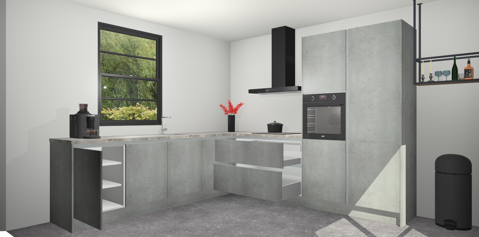 De Beton Parelgrijs greeploze keuken Porto heeft 5 ingebouwde apparaten - een oven, inductiekookplaat, afzuigkap, vaatwasser en koelkast - waarmee u in een handomdraai heerlijke gerechten bereidt. Soft-close deuren zorgen voor nog meer functionaliteit en gemak. En dit alles voor een onverslaanbaar vaste prijs. En als u nu bestelt, duurt de levering maar 7 weken! Wat nog ongelooflijker is, is dat onze kasten voor gemonteerd worden geleverd.