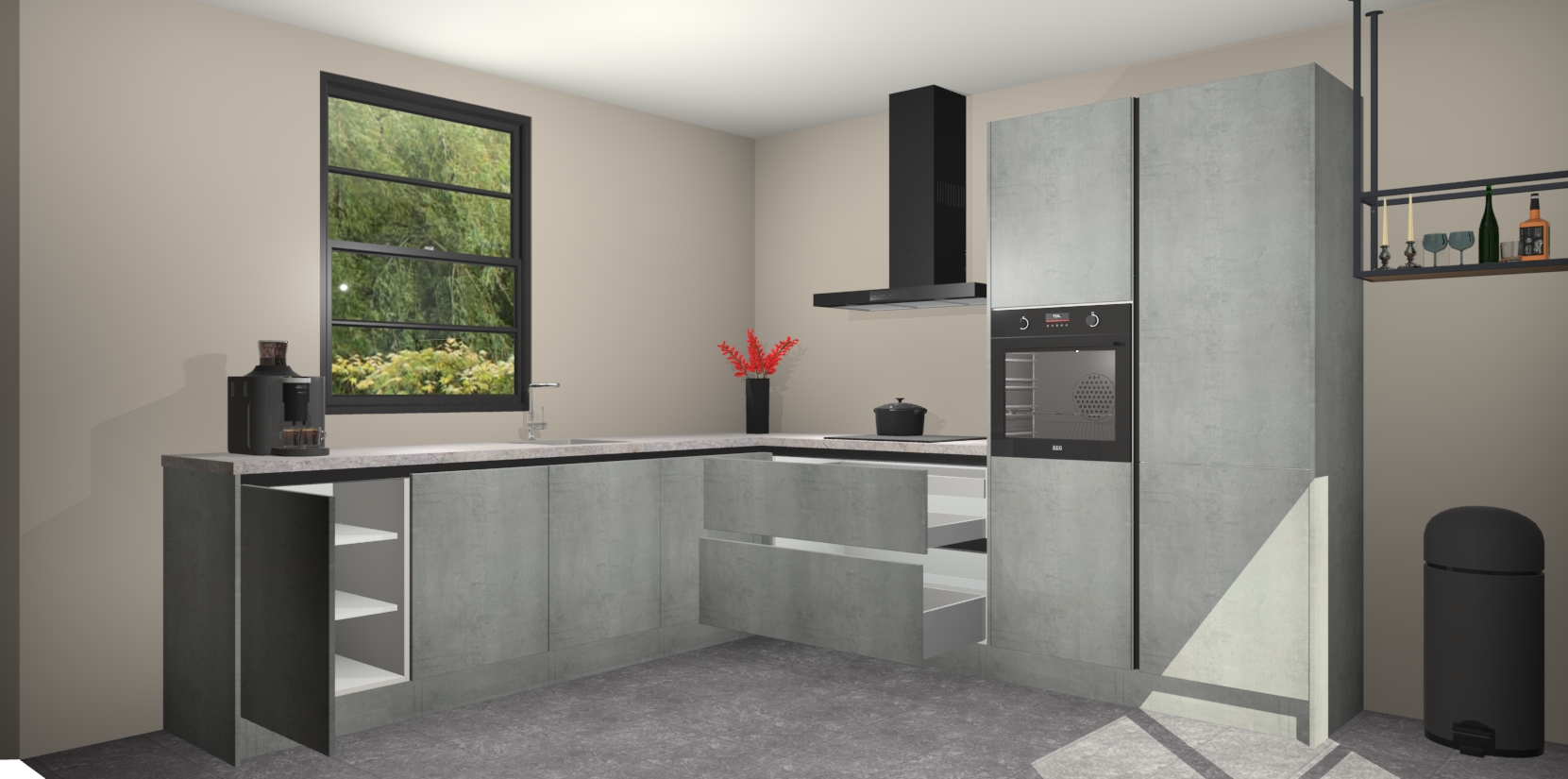 De Beton Parelgrijs greeploze keuken Porto heeft 5 ingebouwde apparaten - een oven, inductiekookplaat, afzuigkap, vaatwasser en koelkast - waarmee u in een handomdraai heerlijke gerechten bereidt. Soft-close deuren zorgen voor nog meer functionaliteit en gemak. En dit alles voor een onverslaanbaar vaste prijs. En als u nu bestelt, duurt de levering maar 7 weken! Wat nog ongelooflijker is, is dat onze kasten voor gemonteerd worden geleverd.