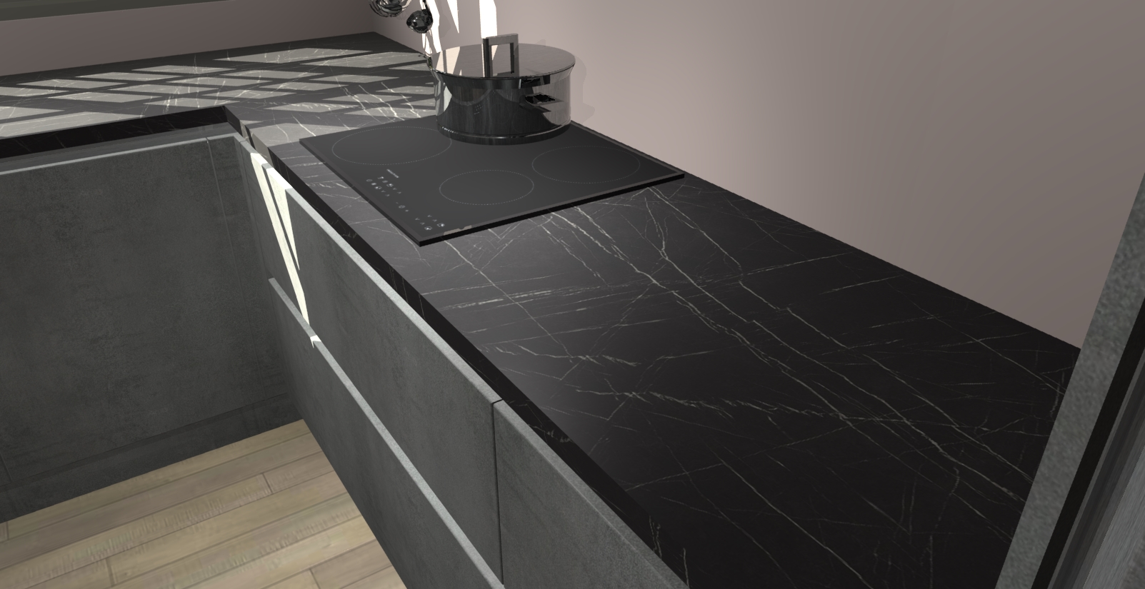 • Bij een hoekwerkblad zijn de hoeken in gevreesd en op maat gemaakt