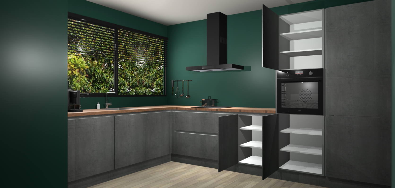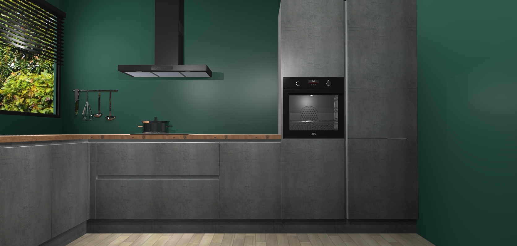Met een modern, tijdloos design en ruime opslagruimte, zult u zich in no-time thuis voelen in uw nieuwe keuken. Uw leven wordt eenvoudiger met de soft-close deuren die voor het ultieme stille comfort zorgen - geen geluid dat u stoort terwijl u kookt. Ook is de keuken voorzien van 5 ingebouwde apparaten: een oven, inductie kookplaat, afzuigkap, vaatwasser en koelkast. Deze kunnen gemakkelijk na bestelling worden bijgewerkt naar AEG - waardoor uw luxe ervaring compleet is.