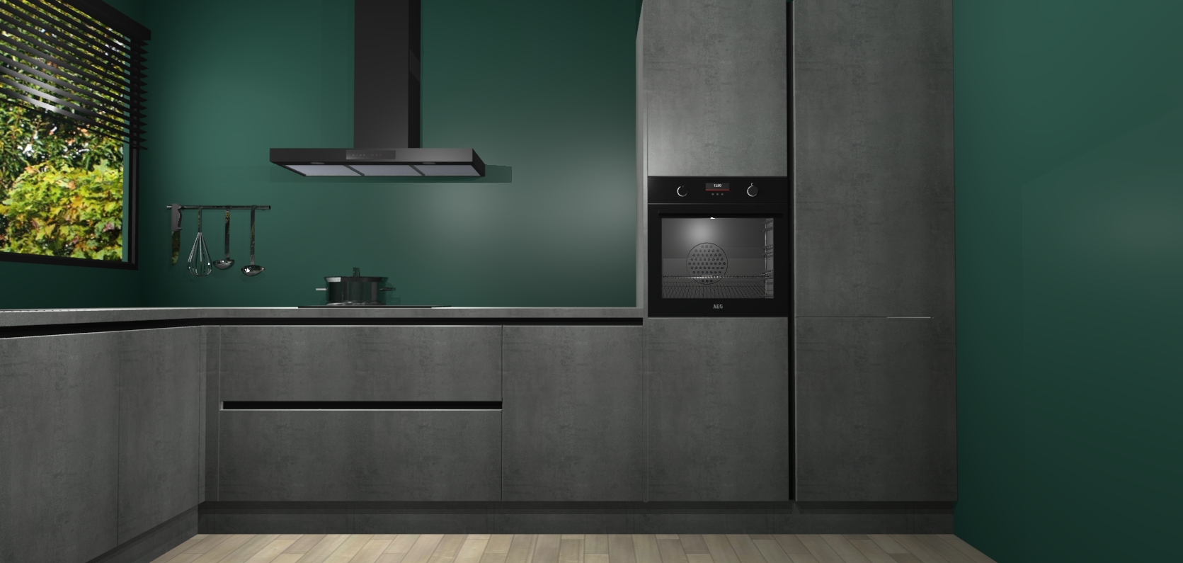 Met een modern, tijdloos design en ruime opslagruimte, zult u zich in no-time thuis voelen in uw nieuwe keuken. Uw leven wordt eenvoudiger met de soft-close deuren die voor het ultieme stille comfort zorgen - geen geluid dat u stoort terwijl u kookt. Ook is de keuken voorzien van 5 ingebouwde apparaten: een oven, inductie kookplaat, afzuigkap, vaatwasser en koelkast. Deze kunnen gemakkelijk na bestelling worden bijgewerkt naar AEG - waardoor uw luxe ervaring compleet is.