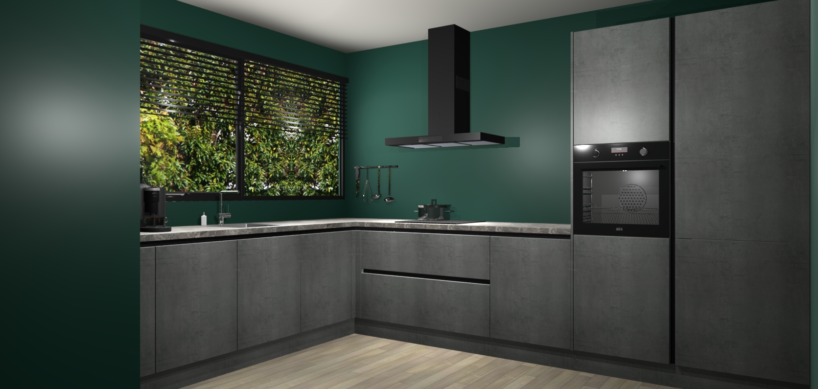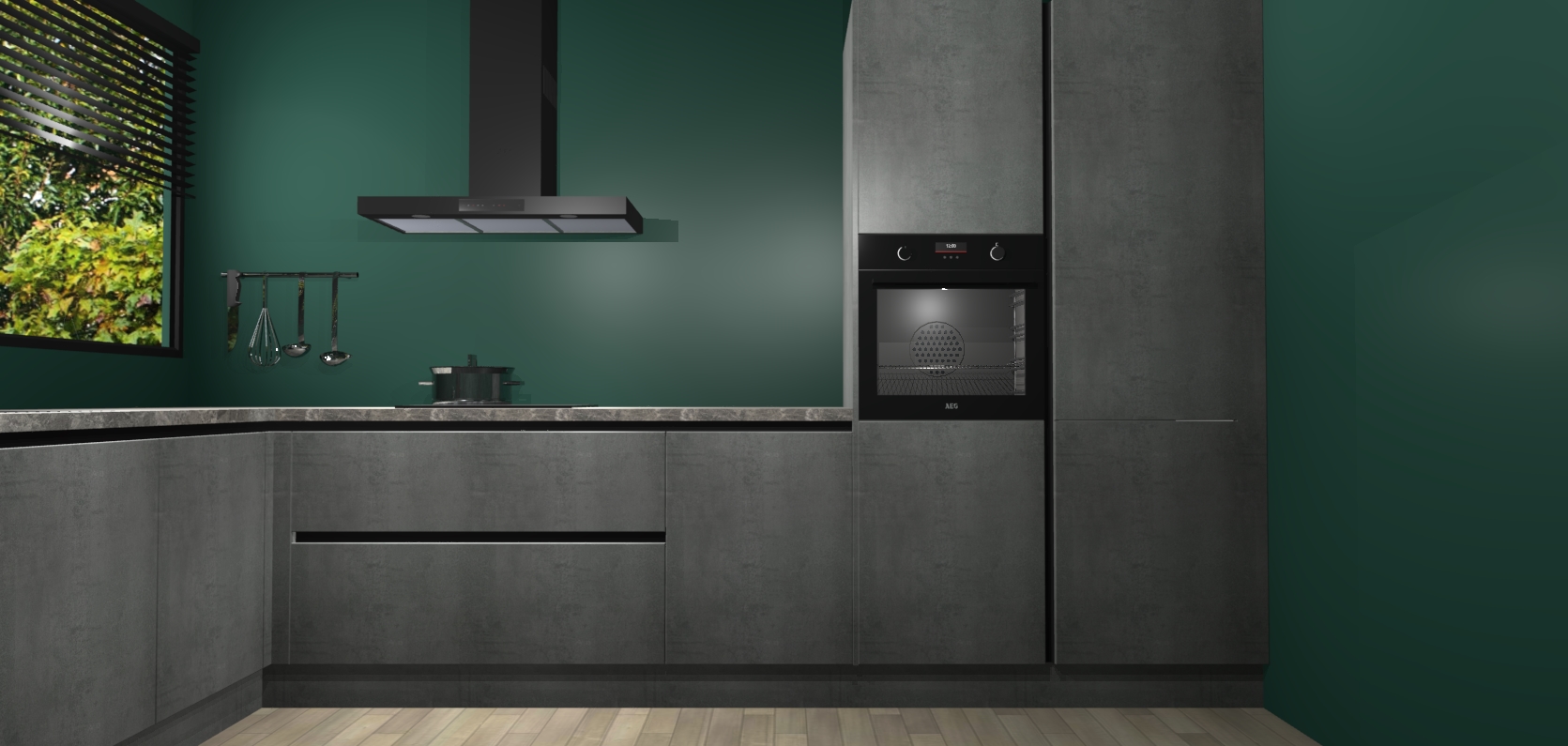 Met een modern, tijdloos design en ruime opslagruimte, zult u zich in no-time thuis voelen in uw nieuwe keuken. Uw leven wordt eenvoudiger met de soft-close deuren die voor het ultieme stille comfort zorgen - geen geluid dat u stoort terwijl u kookt. Ook is de keuken voorzien van 5 ingebouwde apparaten: een oven, inductie kookplaat, afzuigkap, vaatwasser en koelkast. Deze kunnen gemakkelijk na bestelling worden bijgewerkt naar AEG - waardoor uw luxe ervaring compleet is.