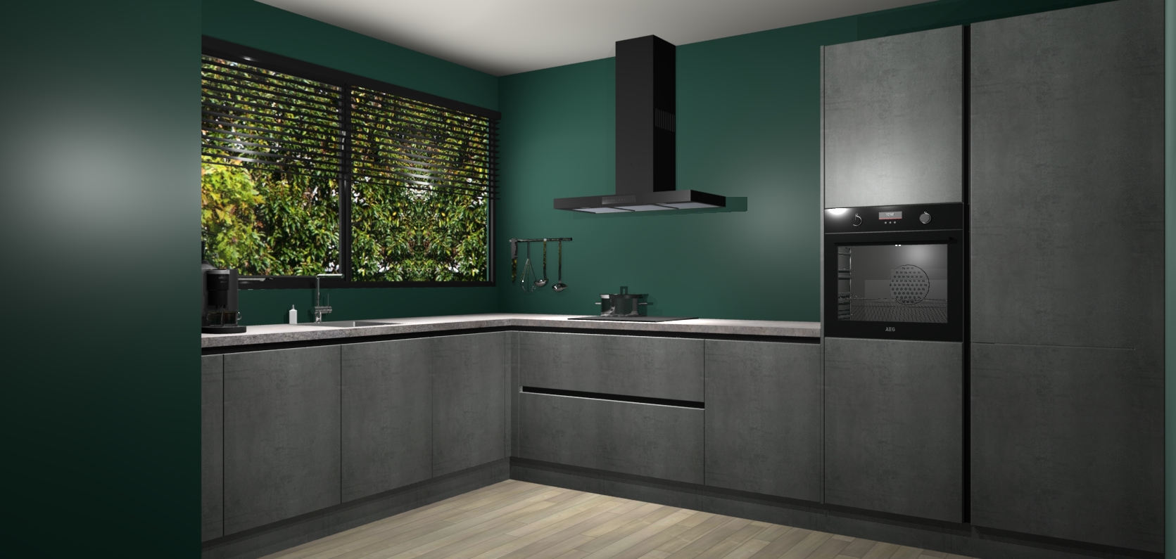 Met een modern, tijdloos design en ruime opslagruimte, zult u zich in no-time thuis voelen in uw nieuwe keuken. Uw leven wordt eenvoudiger met de soft-close deuren die voor het ultieme stille comfort zorgen - geen geluid dat u stoort terwijl u kookt. Ook is de keuken voorzien van 5 ingebouwde apparaten: een oven, inductie kookplaat, afzuigkap, vaatwasser en koelkast. Deze kunnen gemakkelijk na bestelling worden bijgewerkt naar AEG - waardoor uw luxe ervaring compleet is.