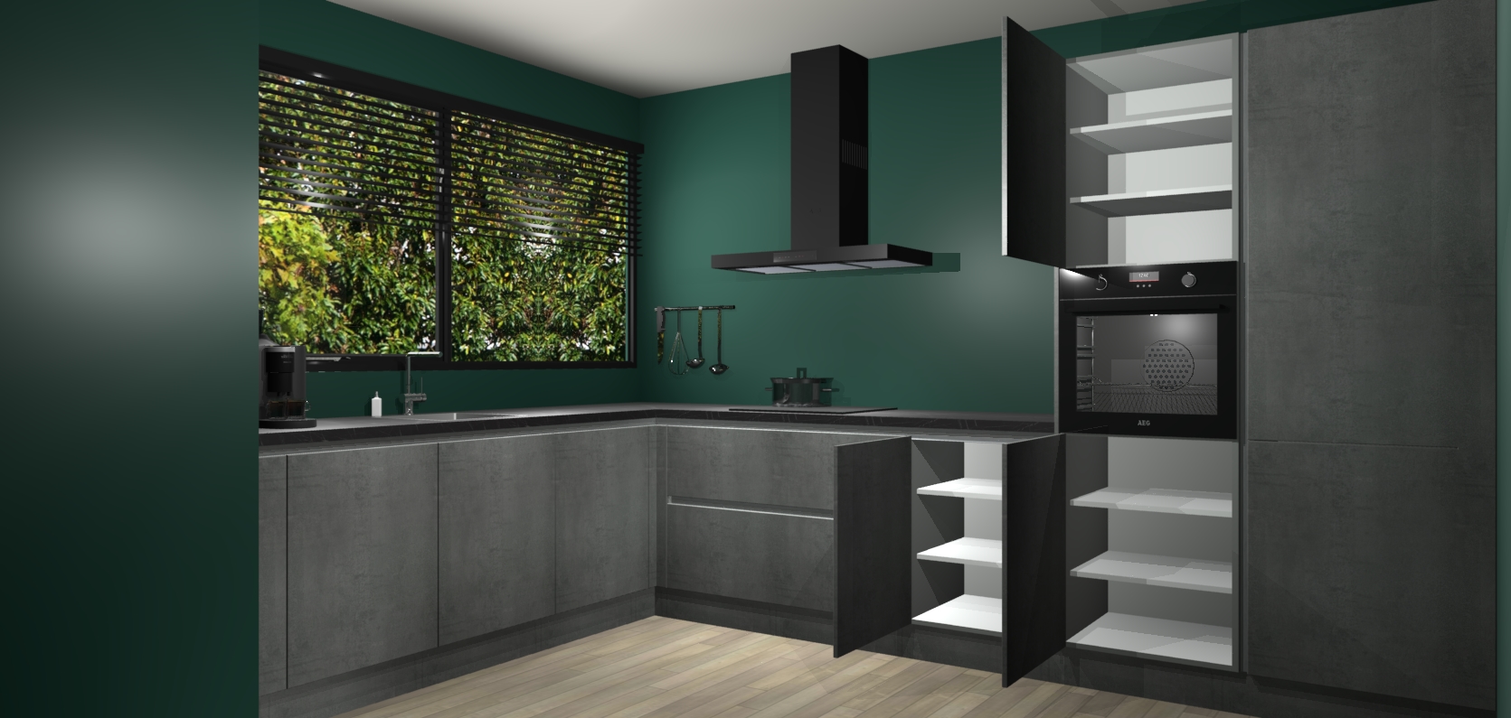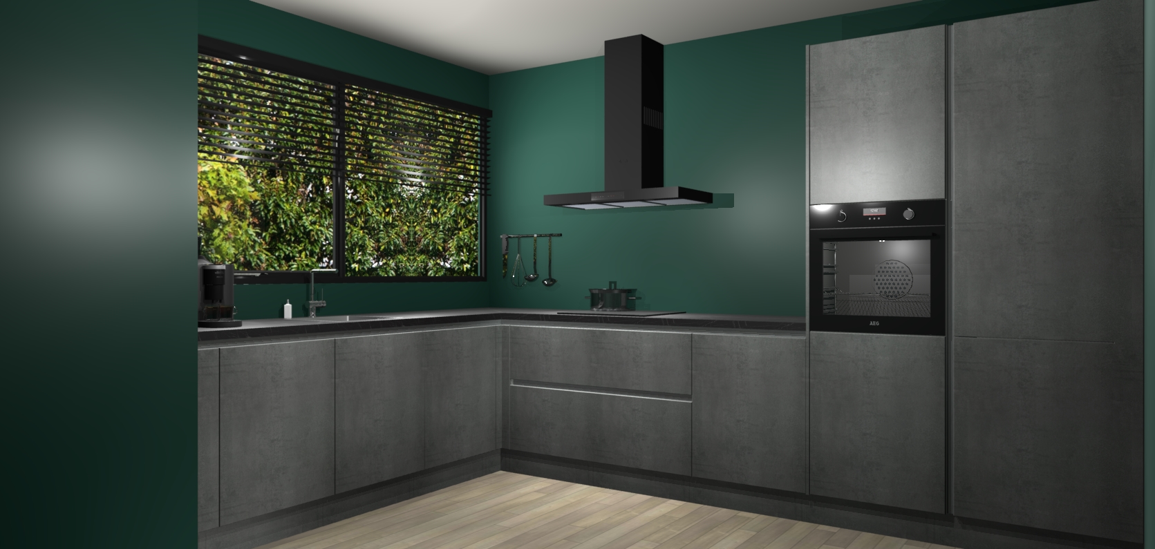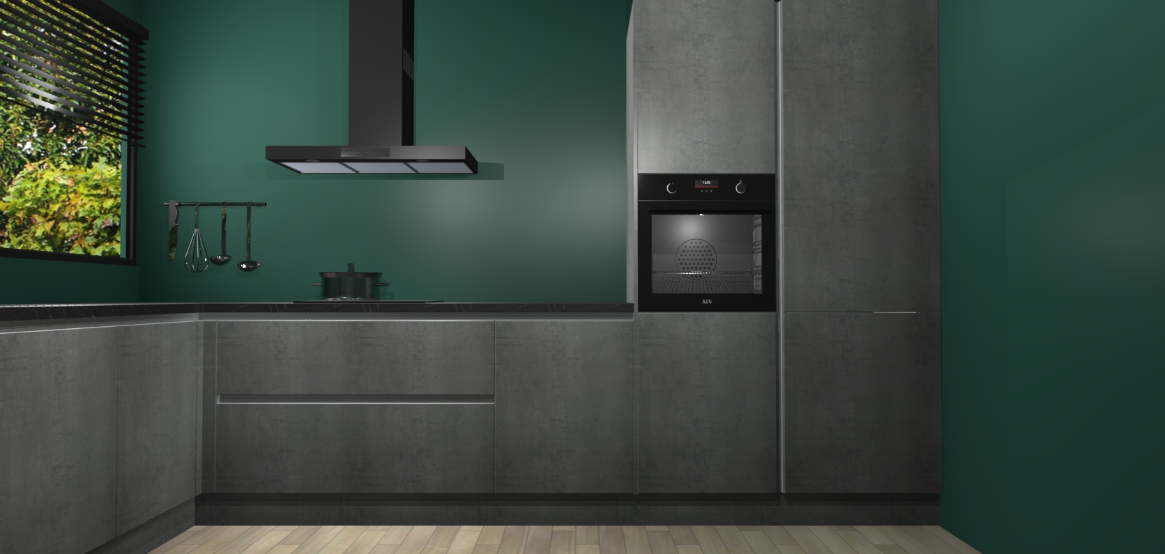 Met een modern, tijdloos design en ruime opslagruimte, zult u zich in no-time thuis voelen in uw nieuwe keuken. Uw leven wordt eenvoudiger met de soft-close deuren die voor het ultieme stille comfort zorgen - geen geluid dat u stoort terwijl u kookt. Ook is de keuken voorzien van 5 ingebouwde apparaten: een oven, inductie kookplaat, afzuigkap, vaatwasser en koelkast. Deze kunnen gemakkelijk na bestelling worden bijgewerkt naar AEG - waardoor uw luxe ervaring compleet is.