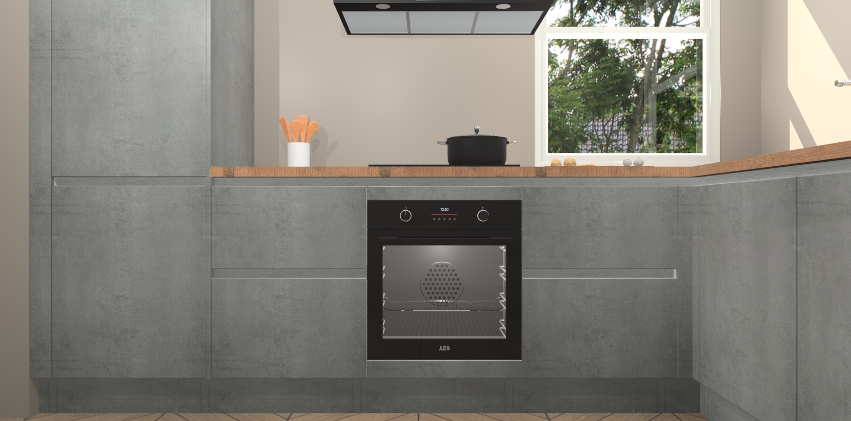 Wat maakt deze keuken zo bijzonder? Ten eerste geeft het houten werkblad uw ruimte een onmiskenbaar klassieke uitstraling. De natuurlijke afwerking roept warmte en elegantie op die nooit uit de mode zullen raken. Bovendien is het gemakkelijk schoon te houden en te onderhouden, zodat je er jarenlang plezier van kunt hebben. Als u op zoek bent naar extra gemak in uw keuken, dan heeft u bij het plaatsen van een bestelling bij ons ook de optie om uw toestellen te upgraden naar AEG-modellen - zo haalt u moderne innovatie van topmerken in apparatentechnologie rechtstreeks in huis.