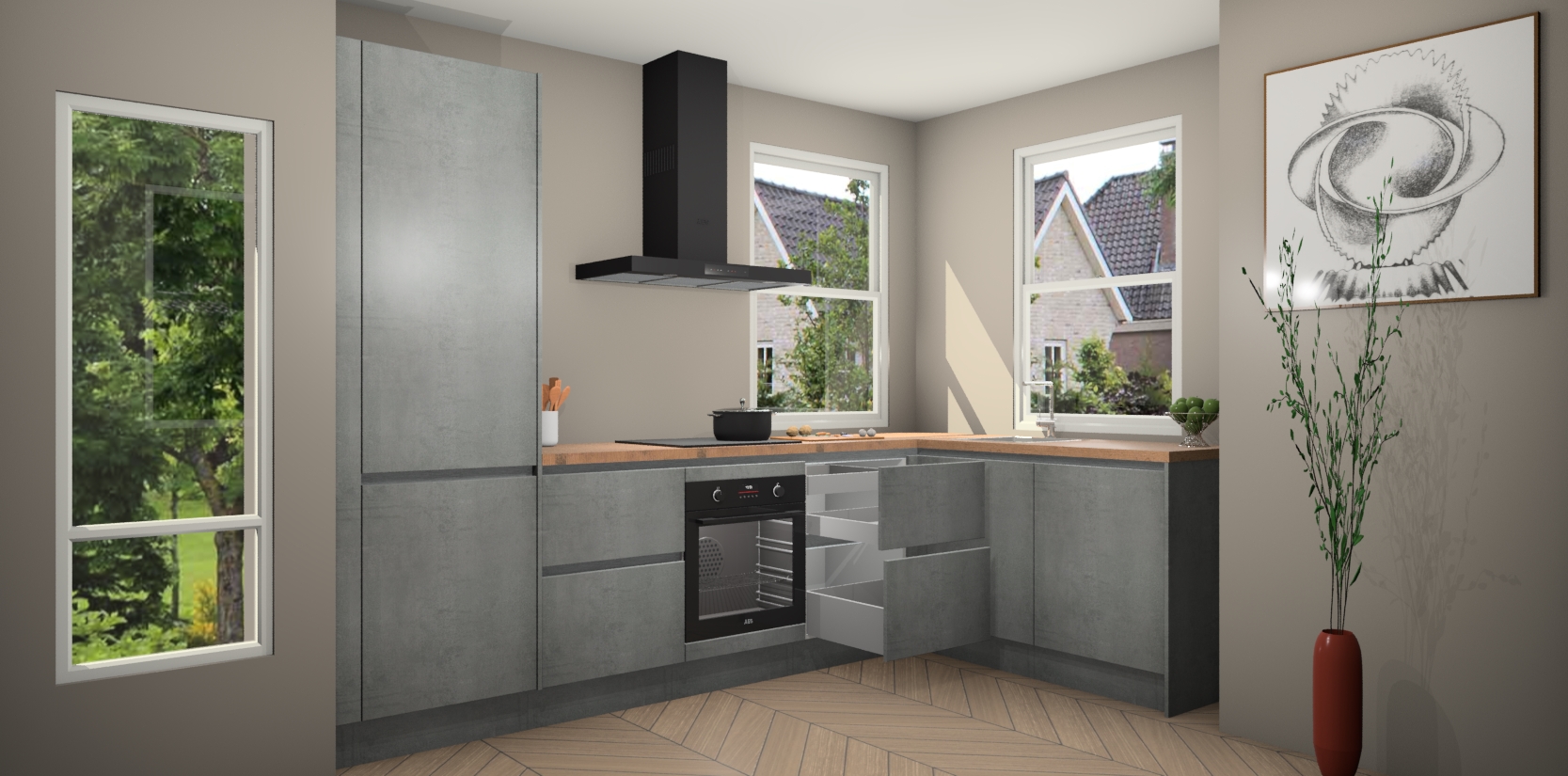 Welkom bij de Beton Parelgrijs greeploze keuken Salzburg! Met een chique combinatie van een prachtig houten werkblad, klassiek design en altijd concurrerende prijzen is de Beton Parelgrijs greeploze keuken Salzburg de keuken van uw dromen! Deze keuken is perfect voor alle huisformaten en decorstijlen en straalt stijl en verfijning uit. Van het tijdloze design tot de functionele functies, er is geen betere manier om de look van uw woon- of kookruimte te verbeteren.