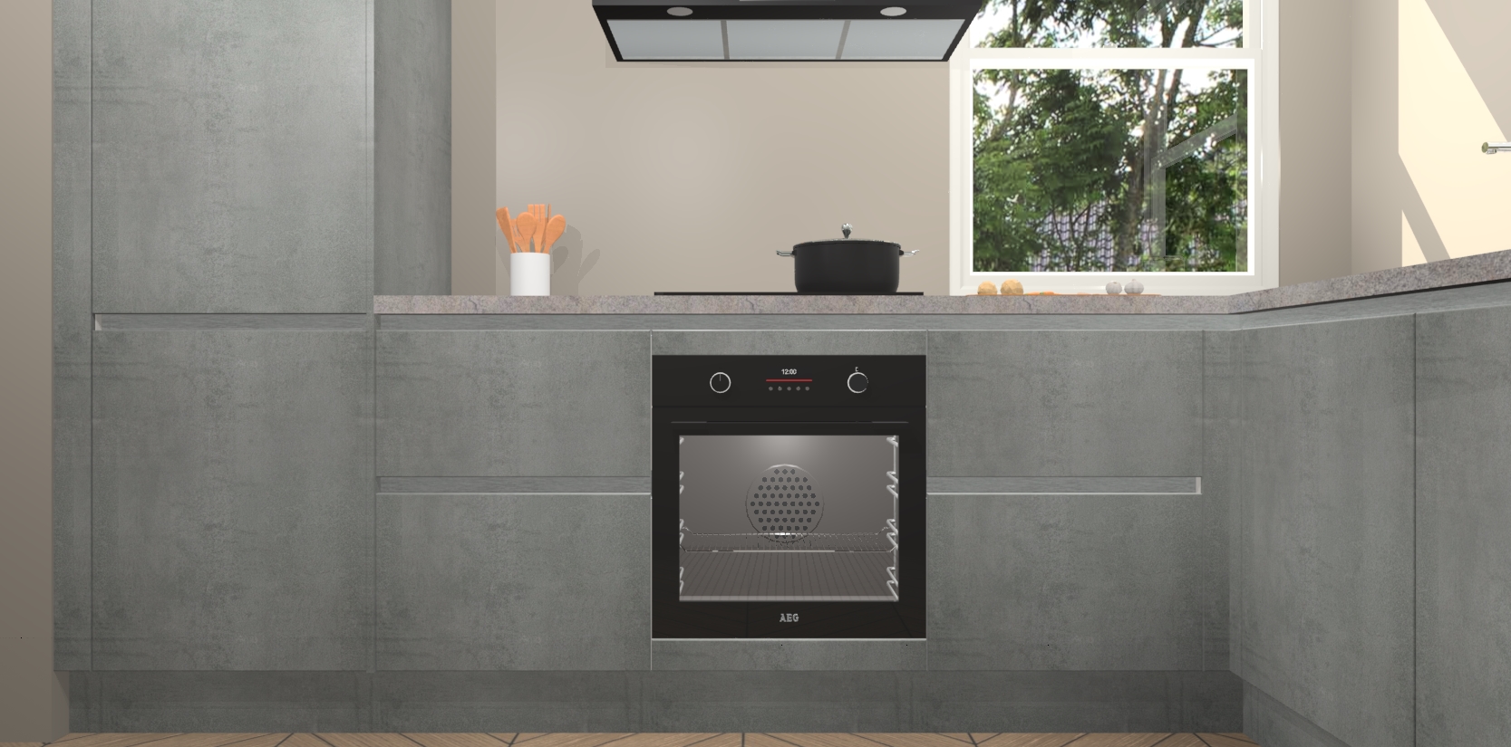 Wat maakt deze keuken zo bijzonder? Ten eerste geeft het houten werkblad uw ruimte een onmiskenbaar klassieke uitstraling. De natuurlijke afwerking roept warmte en elegantie op die nooit uit de mode zullen raken. Bovendien is het gemakkelijk schoon te houden en te onderhouden, zodat je er jarenlang plezier van kunt hebben. Als u op zoek bent naar extra gemak in uw keuken, dan heeft u bij het plaatsen van een bestelling bij ons ook de optie om uw toestellen te upgraden naar AEG-modellen - zo haalt u moderne innovatie van topmerken in apparatentechnologie rechtstreeks in huis.
