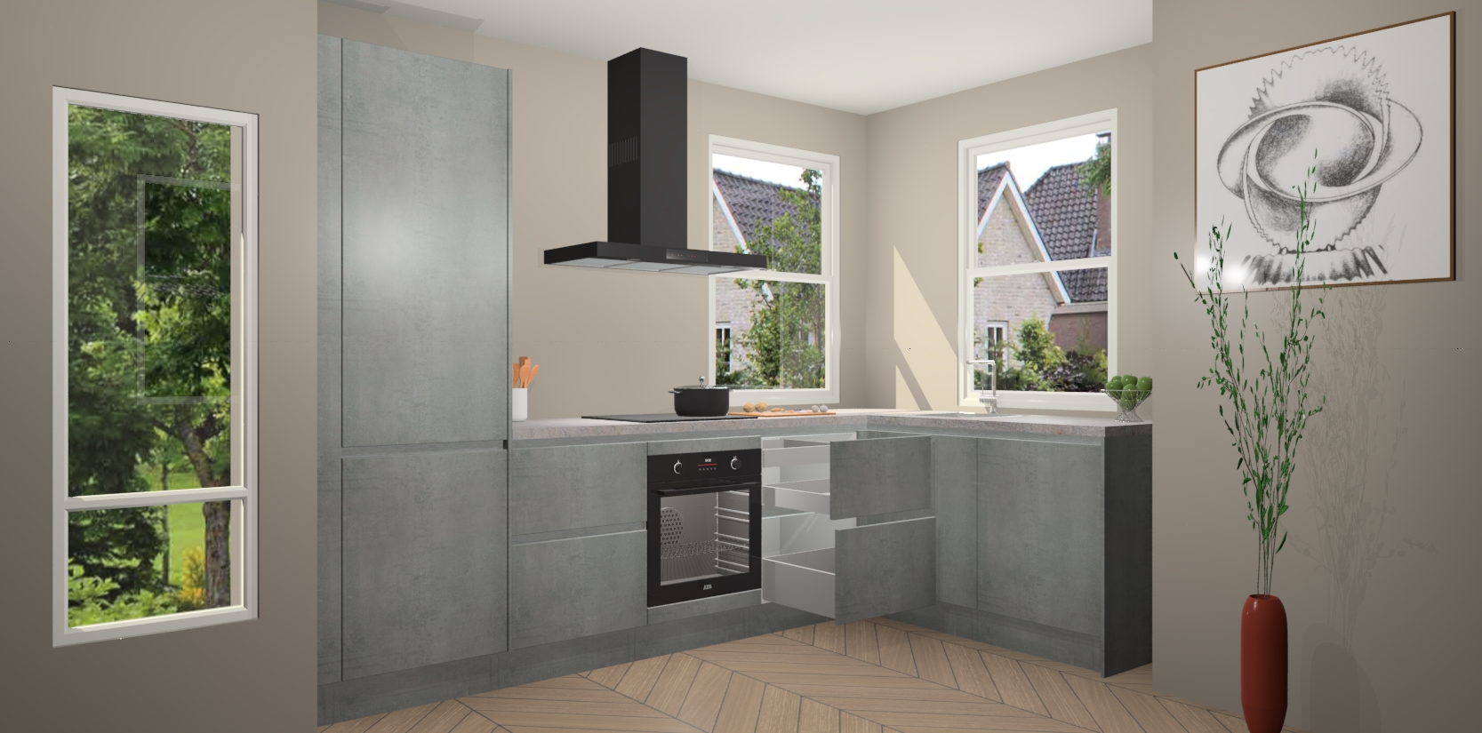 Welkom bij de Beton Parelgrijs greeploze keuken Salzburg! Met een chique combinatie van een prachtig houten werkblad, klassiek design en altijd concurrerende prijzen is de Beton Parelgrijs greeploze keuken Salzburg de keuken van uw dromen! Deze keuken is perfect voor alle huisformaten en decorstijlen en straalt stijl en verfijning uit. Van het tijdloze design tot de functionele functies, er is geen betere manier om de look van uw woon- of kookruimte te verbeteren.