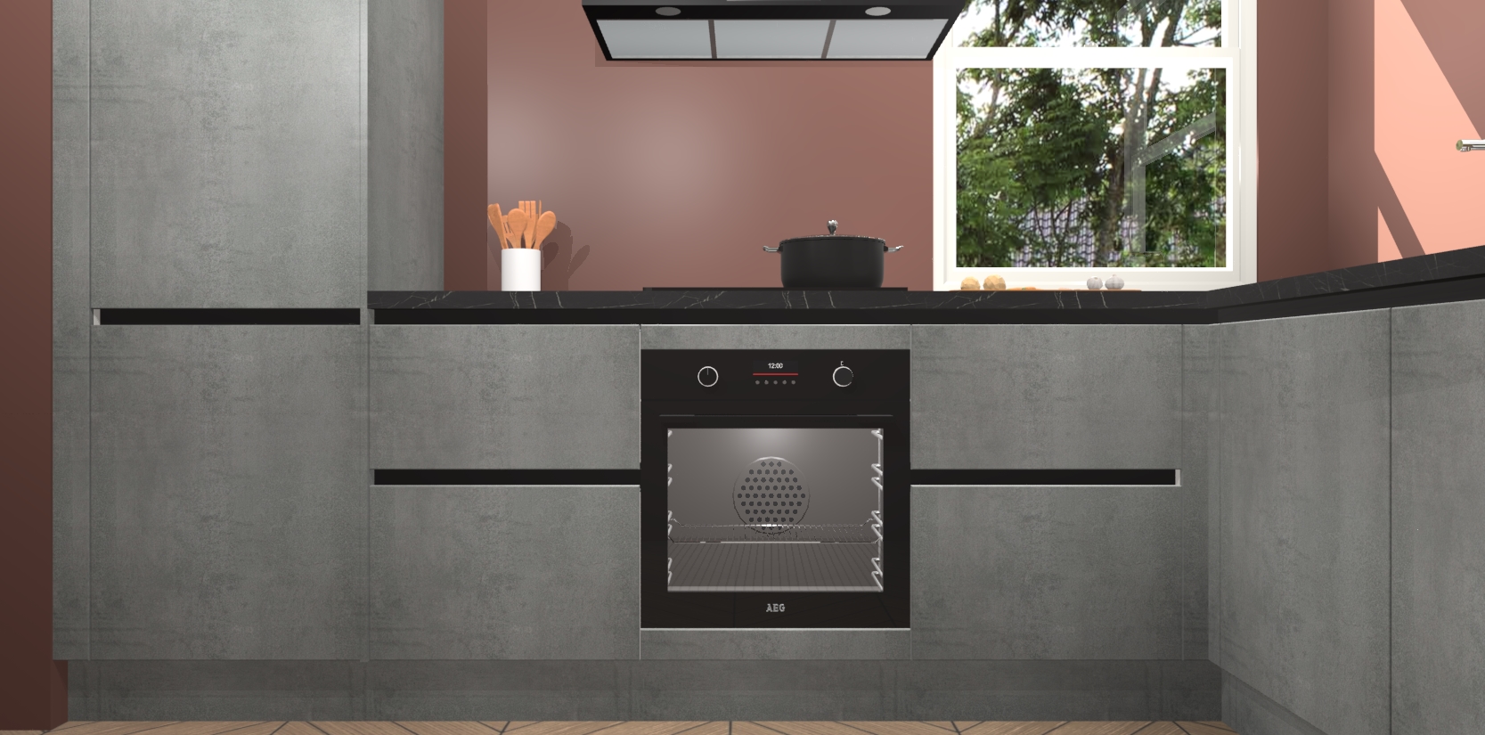 Wat maakt deze keuken zo bijzonder? Ten eerste geeft het houten werkblad uw ruimte een onmiskenbaar klassieke uitstraling. De natuurlijke afwerking roept warmte en elegantie op die nooit uit de mode zullen raken. Bovendien is het gemakkelijk schoon te houden en te onderhouden, zodat je er jarenlang plezier van kunt hebben. Als u op zoek bent naar extra gemak in uw keuken, dan heeft u bij het plaatsen van een bestelling bij ons ook de optie om uw toestellen te upgraden naar AEG-modellen - zo haalt u moderne innovatie van topmerken in apparatentechnologie rechtstreeks in huis.