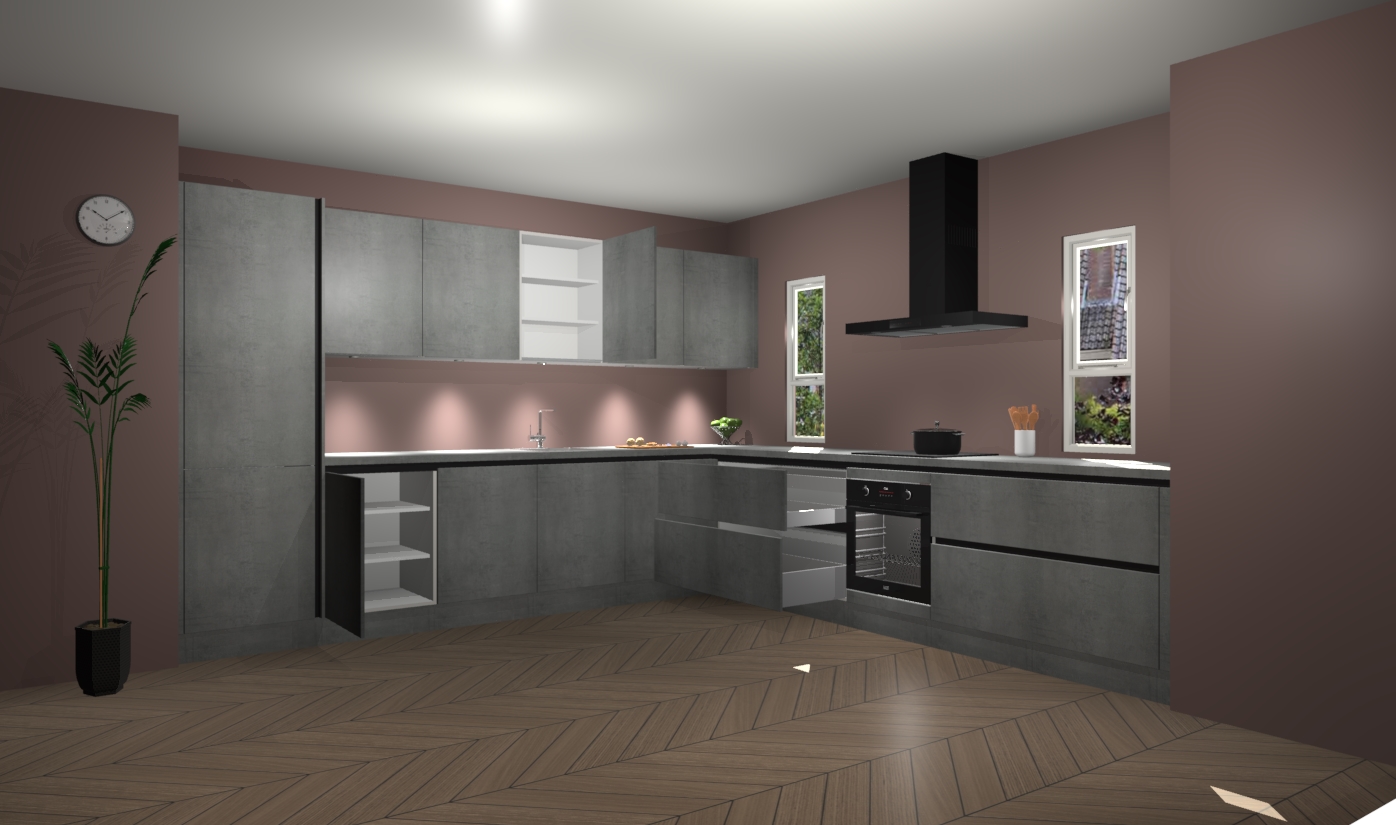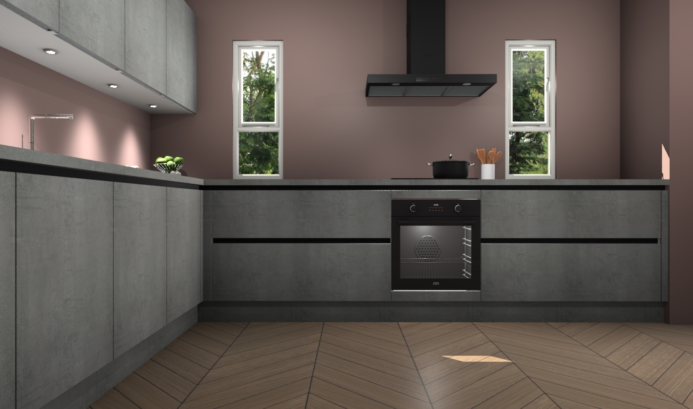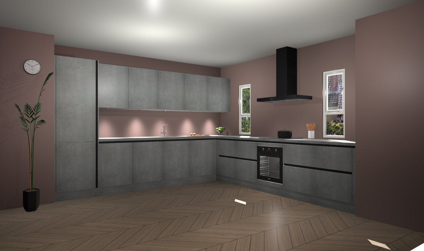 De beton parelgrijs greeploze keuken is een ideale hoekkeuken en heeft alle functies en apparatuur die u maar nodig kunt hebben. Bij de bestelling krijgt u een oven, inductiekookplaat, afzuigkap, vaatwasser en koelkast - deze kunnen desgewenst eenvoudig worden uitgebreid naar AEG na bestellen. Elke kast wordt ook voor gemonteerd geleverd met soft close deuren die jarenlang gebruik beloven. Stelt u zich voor dat u geen gedoe heeft met vervelende montage - vanaf het moment dat u uw bestelling plaats, duurt het slechts 7 weken voor het bij u thuis geleverd wordt.