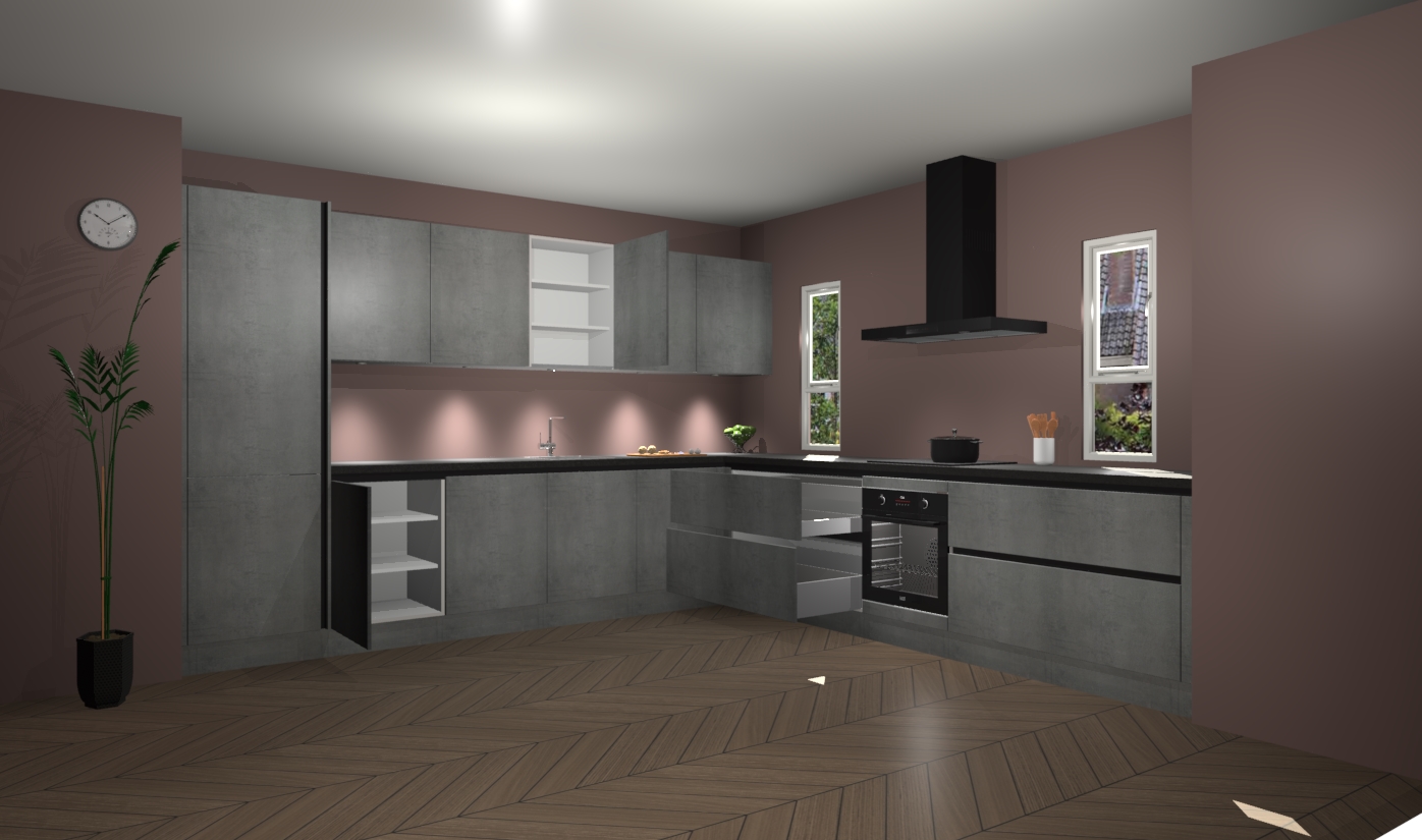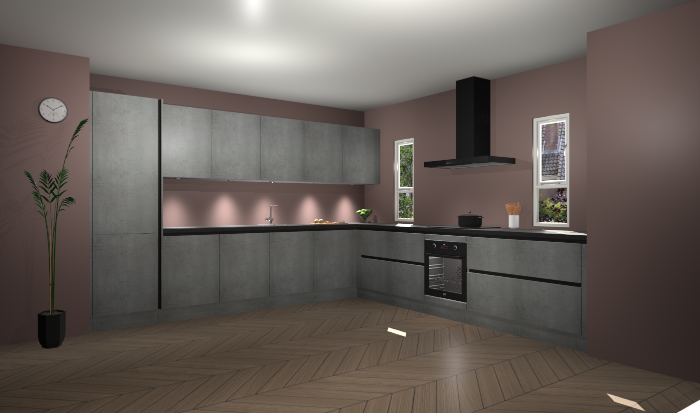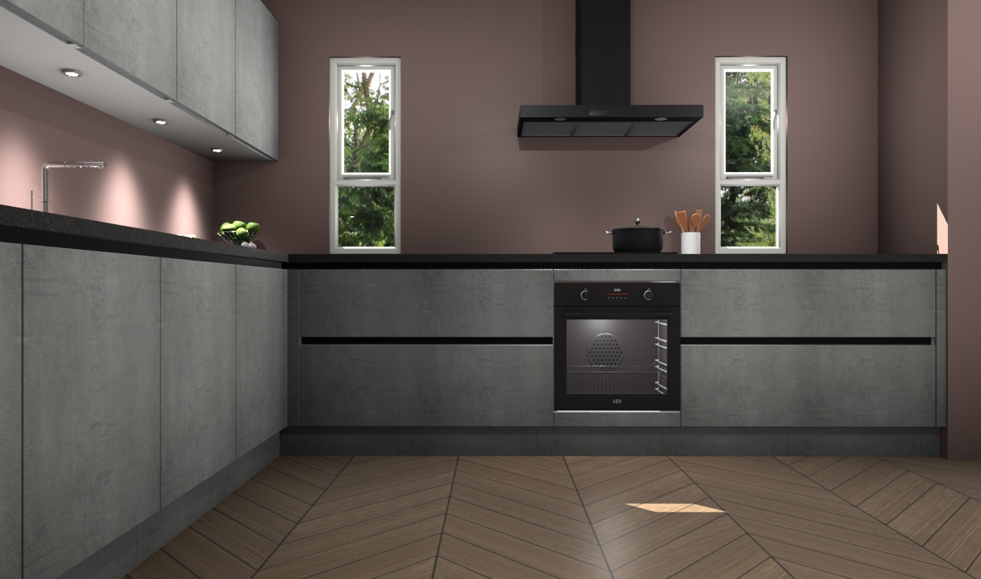 De beton parelgrijs greeploze keuken is een ideale hoekkeuken en heeft alle functies en apparatuur die u maar nodig kunt hebben. Bij de bestelling krijgt u een oven, inductiekookplaat, afzuigkap, vaatwasser en koelkast - deze kunnen desgewenst eenvoudig worden uitgebreid naar AEG na bestellen. Elke kast wordt ook voor gemonteerd geleverd met soft close deuren die jarenlang gebruik beloven. Stelt u zich voor dat u geen gedoe heeft met vervelende montage - vanaf het moment dat u uw bestelling plaats, duurt het slechts 7 weken voor het bij u thuis geleverd wordt.