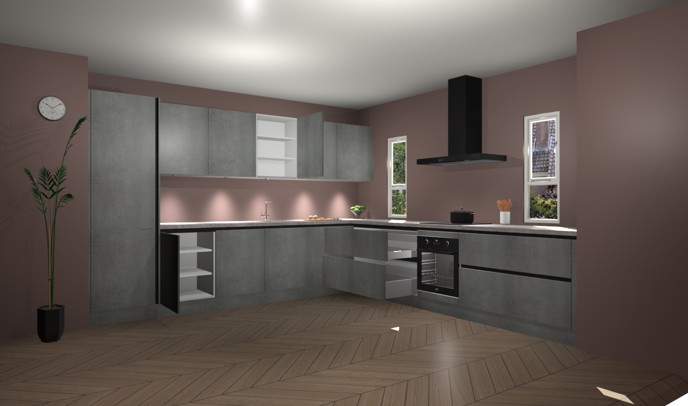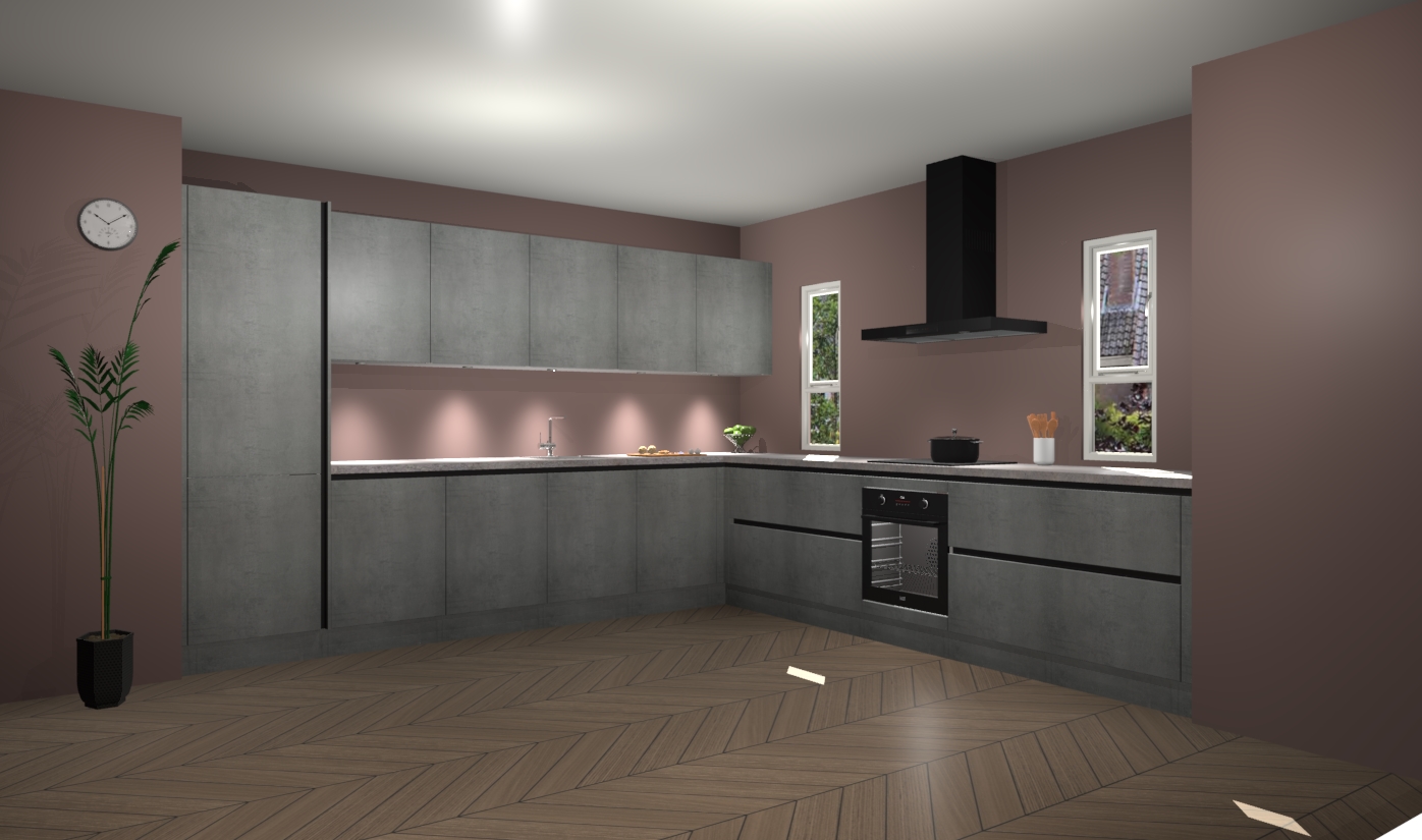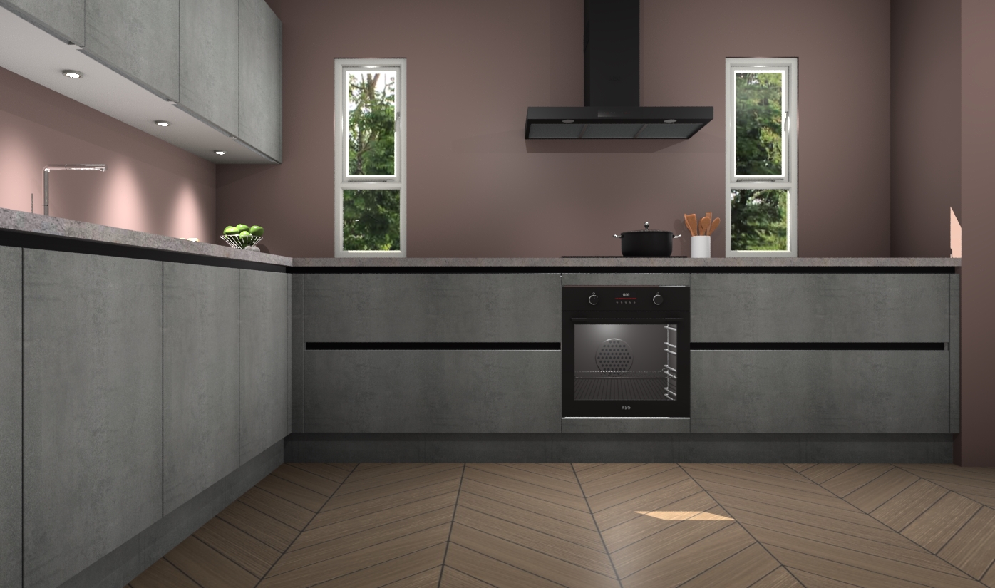 De beton parelgrijs greeploze keuken is een ideale hoekkeuken en heeft alle functies en apparatuur die u maar nodig kunt hebben. Bij de bestelling krijgt u een oven, inductiekookplaat, afzuigkap, vaatwasser en koelkast - deze kunnen desgewenst eenvoudig worden uitgebreid naar AEG na bestellen. Elke kast wordt ook voor gemonteerd geleverd met soft close deuren die jarenlang gebruik beloven. Stelt u zich voor dat u geen gedoe heeft met vervelende montage - vanaf het moment dat u uw bestelling plaats, duurt het slechts 7 weken voor het bij u thuis geleverd wordt.
