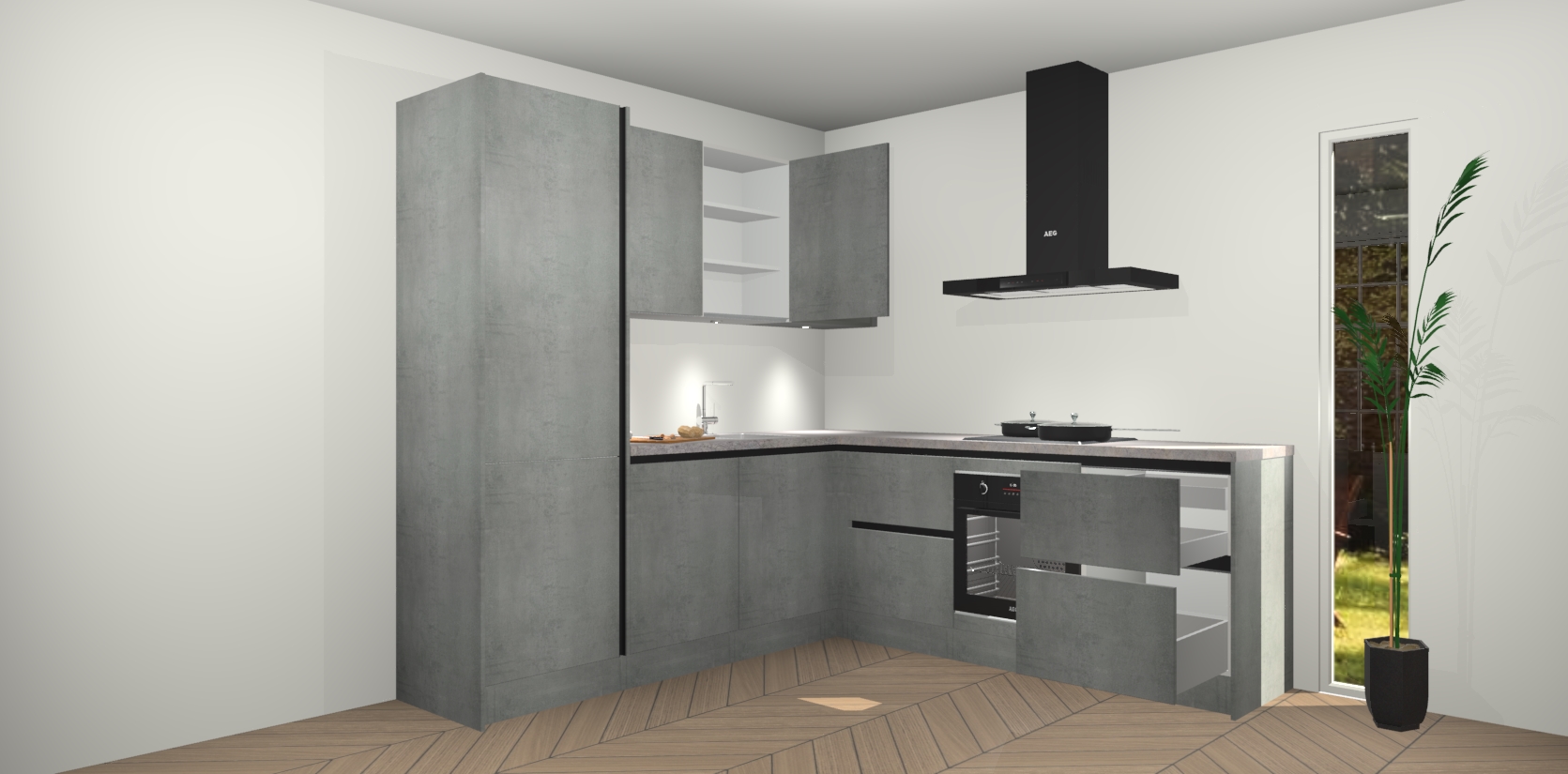 Inclusief plinten, stelpoten en werkblad