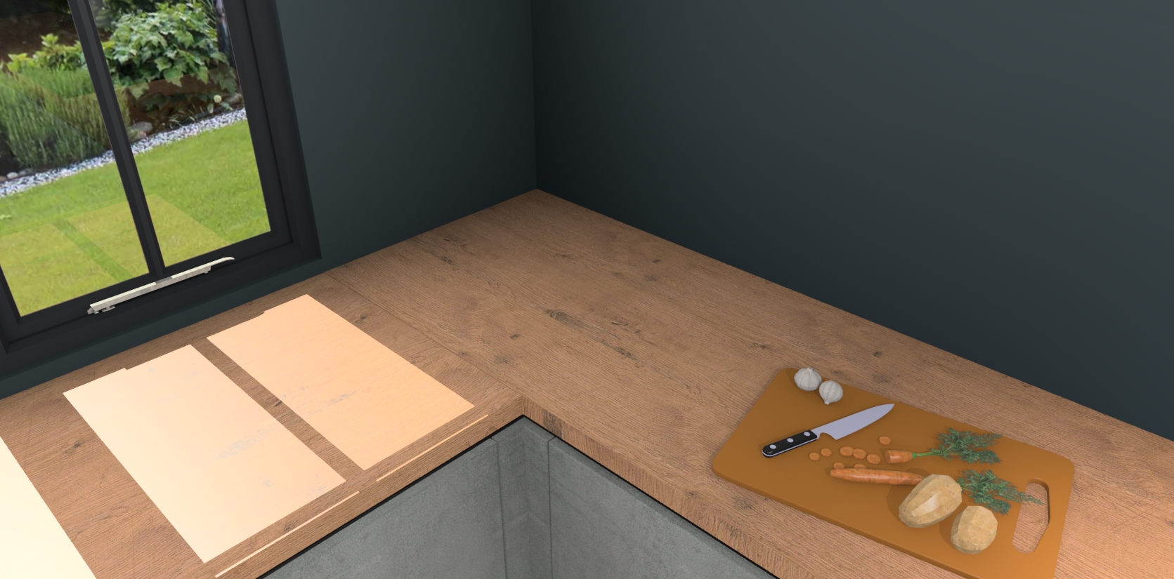 - Bij een hoekwerkblad zijn de hoeken in gevreesd en op maat gemaakt