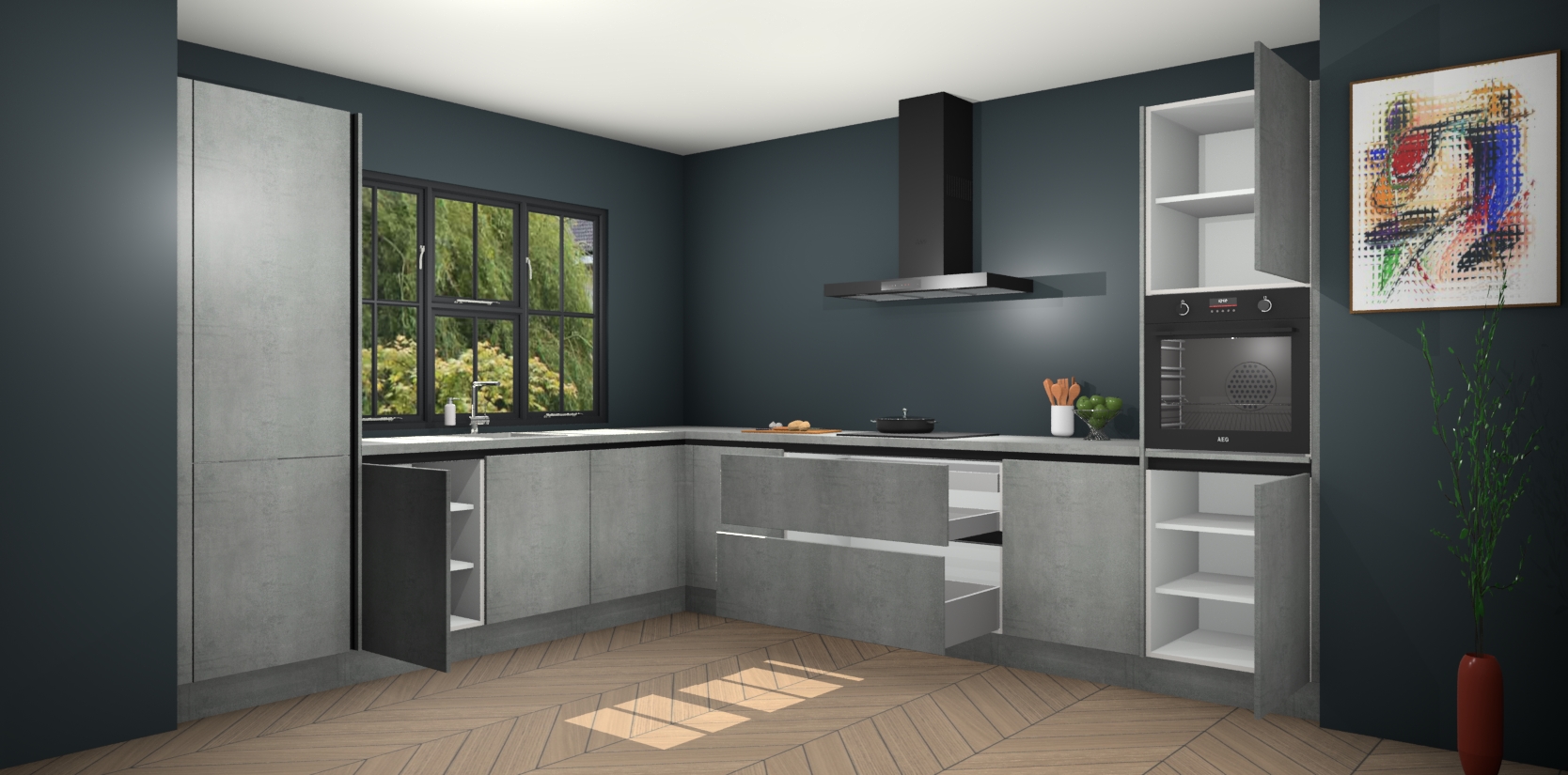 Inclusief plinten, stelpoten en werkblad