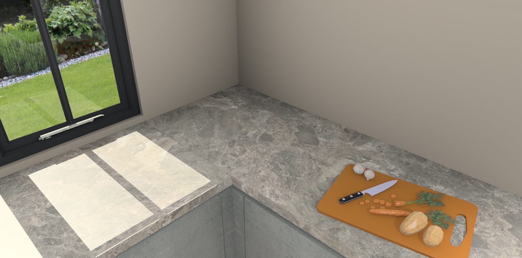 - Bij een hoekwerkblad zijn de hoeken in gevreesd en op maat gemaakt