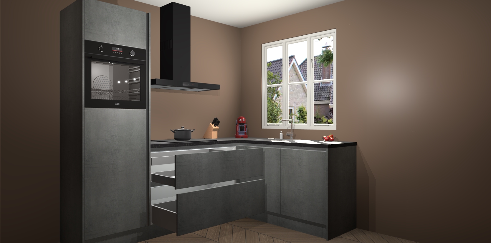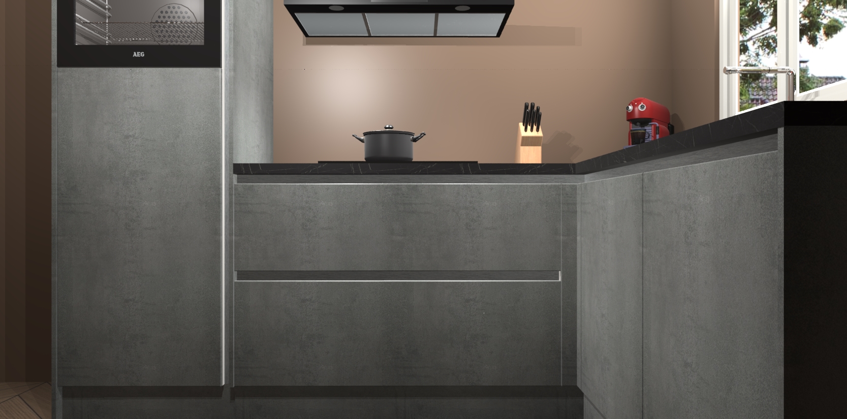 Dit model biedt u voldoende opbergruimte en vijf ingebouwde apparaten: een oven, inductiekookplaat, afzuigkap, vaatwasser en koelkast. Deze apparaten kunnen gemakkelijk worden geüpgrade naar AEG nadat u besteld heeft. De verschillende laden en kastjes bevatten softclose-deuren waardoor ze gezellig dichtvallen met een geruststellend helemaal geruisloos geluid. En dat is nog niet alles! We garanderen ook dat de prijs altijd laag blijft - dus haal nu uw Beton Parelgrijs greeploze keuken Victoria terwijl het kan.