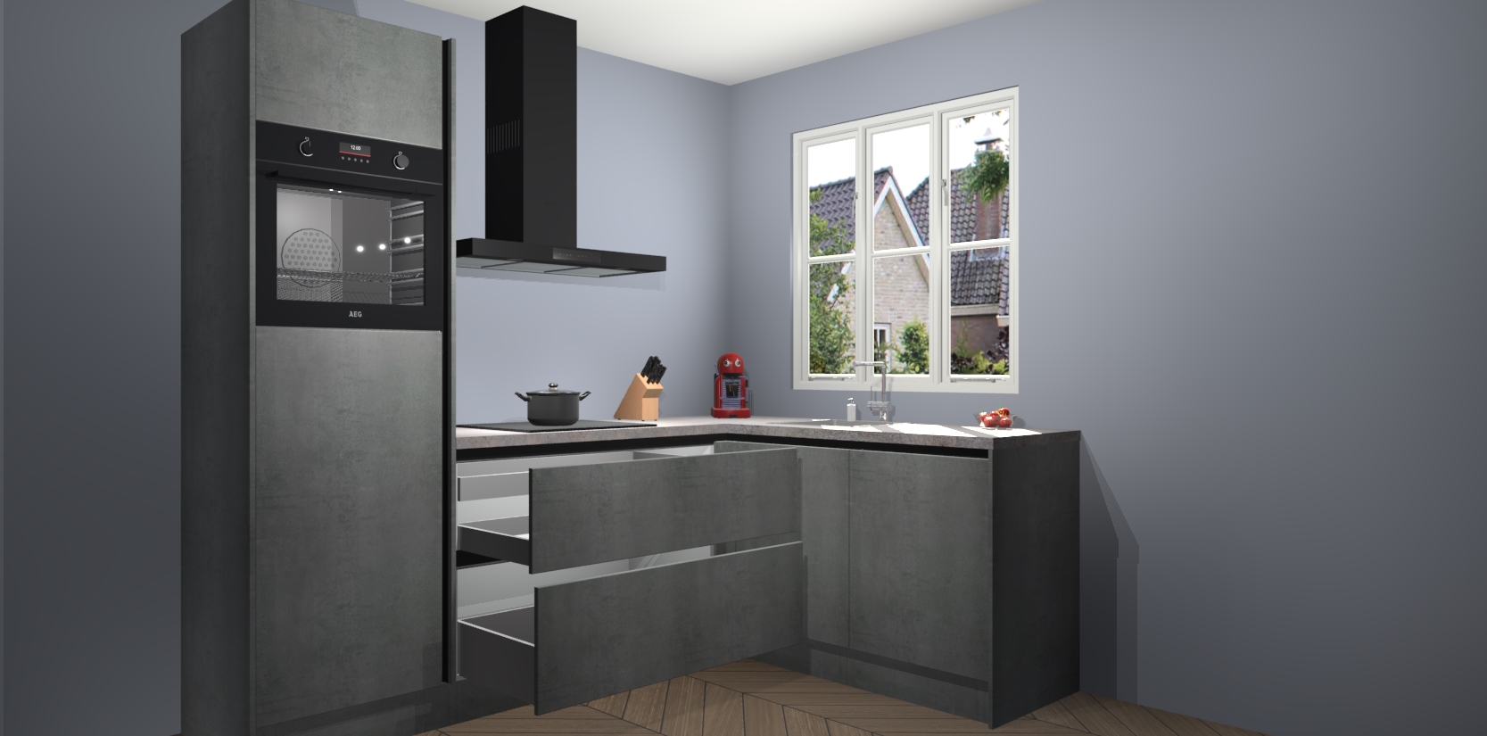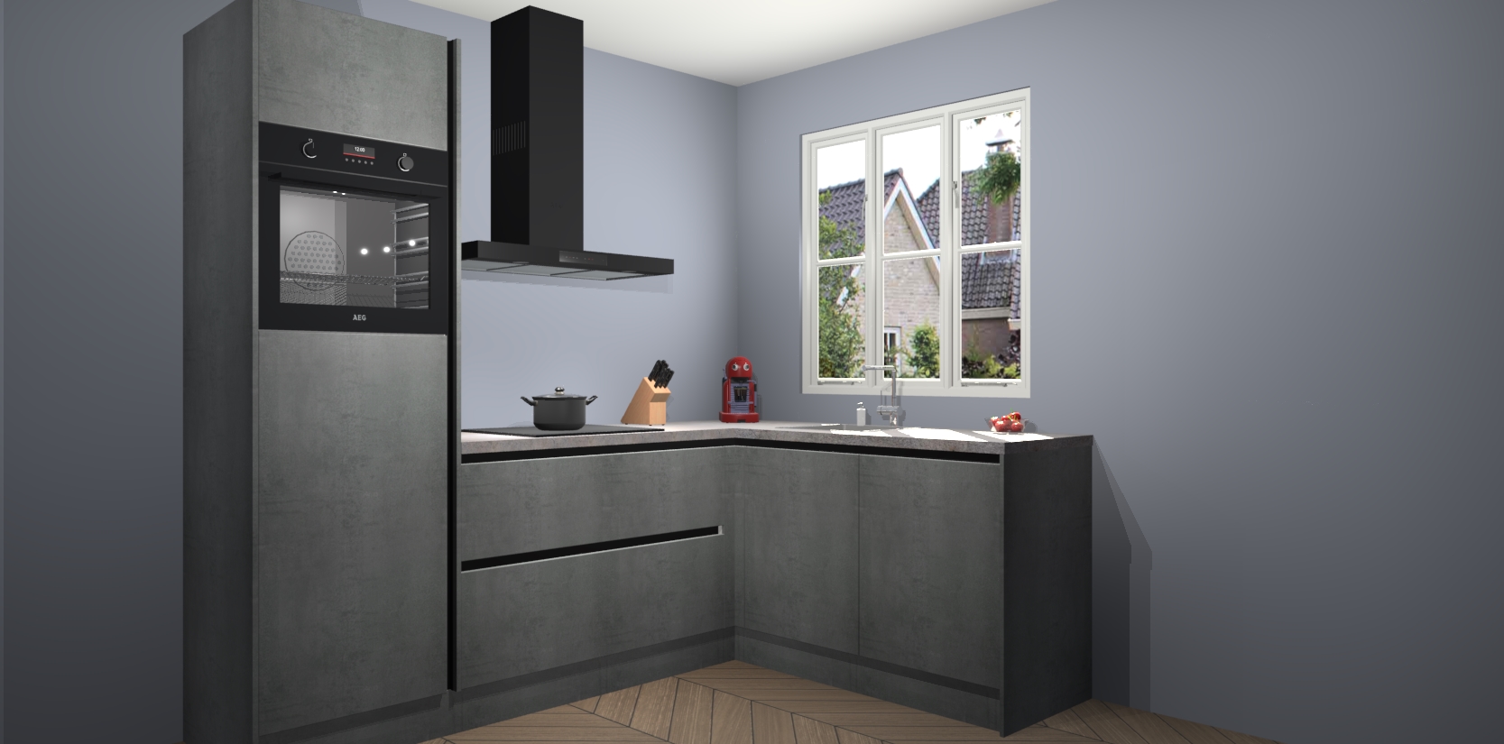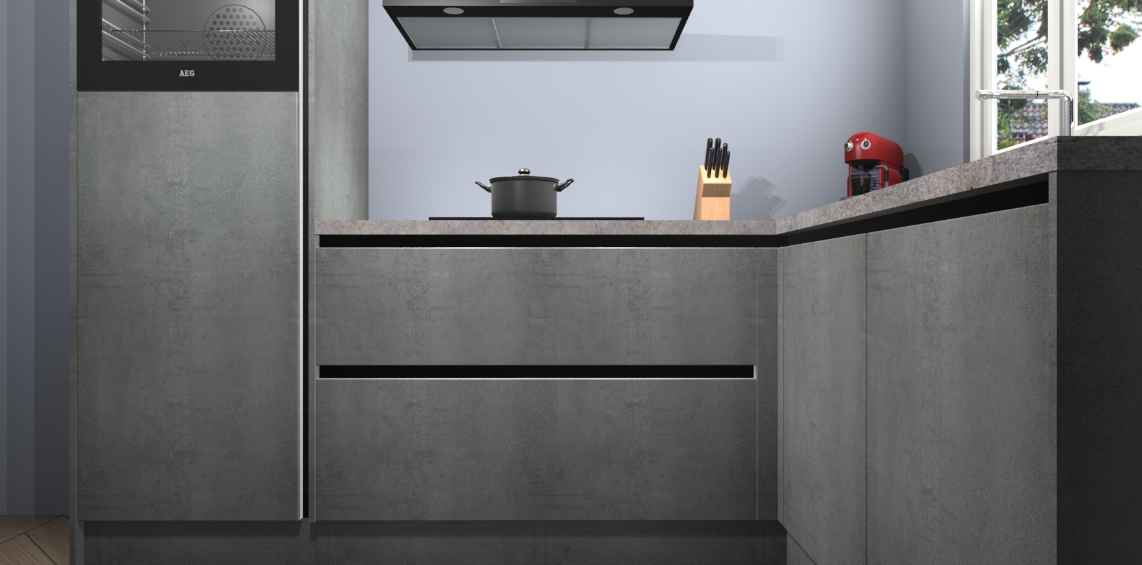 Dit model biedt u voldoende opbergruimte en vijf ingebouwde apparaten: een oven, inductiekookplaat, afzuigkap, vaatwasser en koelkast. Deze apparaten kunnen gemakkelijk worden geüpgrade naar AEG nadat u besteld heeft. De verschillende laden en kastjes bevatten softclose-deuren waardoor ze gezellig dichtvallen met een geruststellend helemaal geruisloos geluid. En dat is nog niet alles! We garanderen ook dat de prijs altijd laag blijft - dus haal nu uw Beton Parelgrijs greeploze keuken Victoria terwijl het kan.